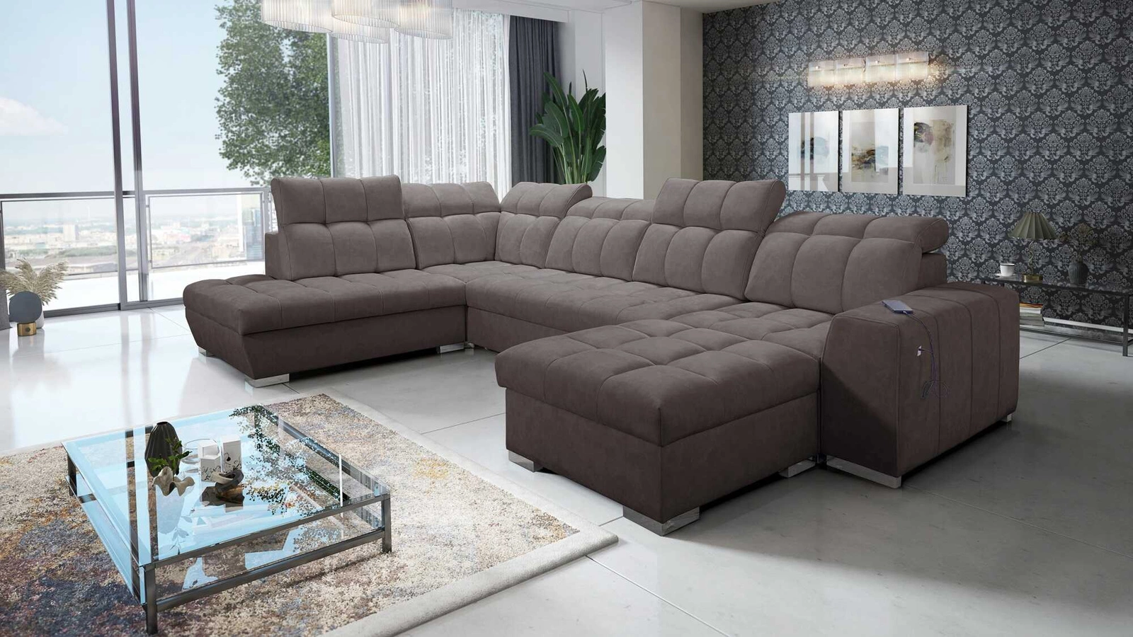 Ecksofa Luigi VI in braun mit verstellbaren Kopfstützen ist ein reizvolles Möbelstück mit der Garantie für höchsten Komfort und Funktionalität.