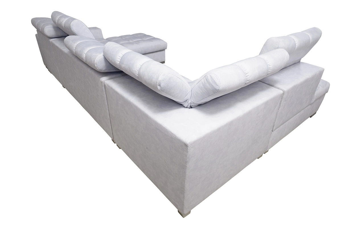 Abmessungen der Möbel ermöglichen füllung eines geräumigen Wohnzimmers oder Sitzungssaals. Breite der Ecke 364 cm, maximale Höhe 100 cm und Tiefe 225 cm. Die Liegefläche der Eckeinheit beträgt 133x282 cm. Die Sitzhöhe des Möbels beträgt 42 cm und die maximale Höhe der Rückenlehne beträgt 62 cm. Gewellte Federn und T30-Polyurethanschaum ist das Material, aus dem der Sitz der Ecke hergestellt ist. Feste Rückenlehne mit verstellbaren Kopfstützen ermöglicht eine einfache anpassung sie können die Neigung der Kopfstützen nach Ihren Wünschen einstellen und so für eine bequeme Erholung nach einem langen Tag sorgen, die Sie, Ihre Lieben und auch Ihre Gäste, die auf diesem einzigartigen Ecksofa Platz nehmen, zu schätzen wissen werden.
