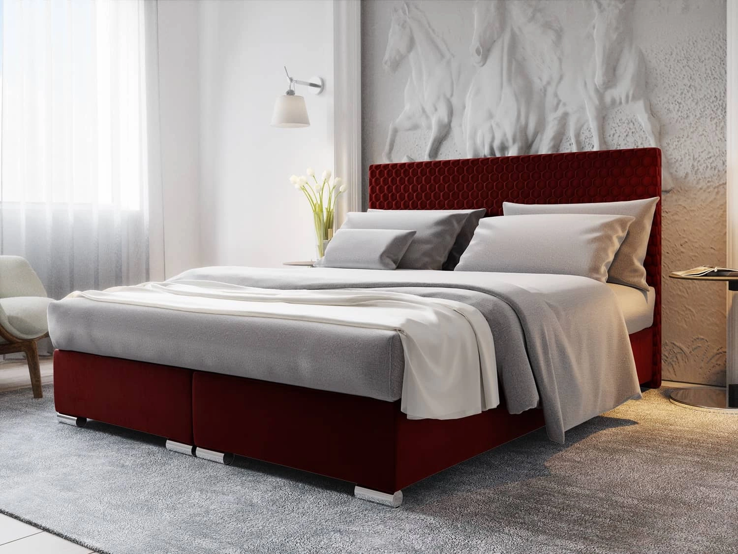 Boxspringbett Fargo 160x200 dunkelrot Bett im modernen skandinavischen Stil mit markantem Kopfteil