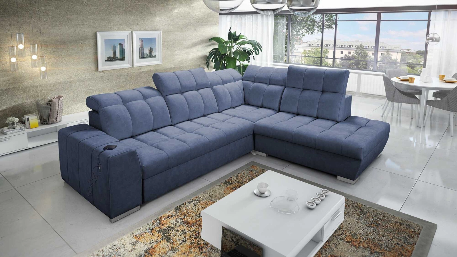 Ecksofa mit Schlaffunktion Luigi VII rechtes blaues bequemes Schlafsofa in moderner Form
