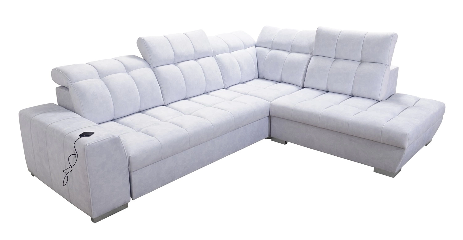 Die Extras dieses Möbels, die alle Nutzer schätzen werden, sind der Bettzeugbehälter, die Schlaffunktion und die USB-Ladebuchse an der Seite des Eckmöbels.