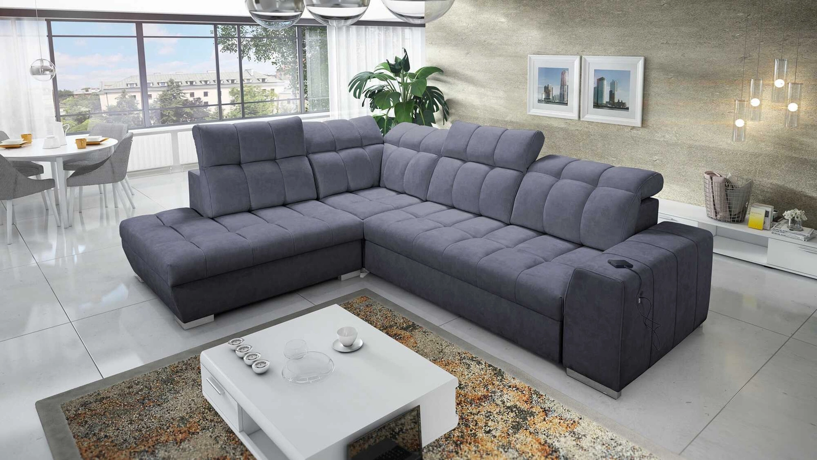 Die Extras dieses Möbels, die alle Nutzer schätzen werden, sind der Bettzeugbehälter, die Schlaffunktion und die USB-Ladebuchse an der Seite des Eckmöbels.