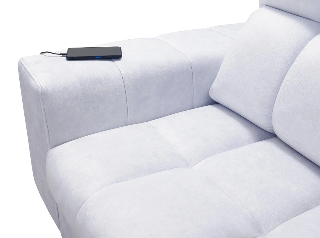 Die Extras dieses Möbels, die alle Nutzer zu schätzen wissen werden, sind die Bettzeugbehälter, die Schlaffunktion und die USB-Ladebuchse an der Seite des Eckschranks.
