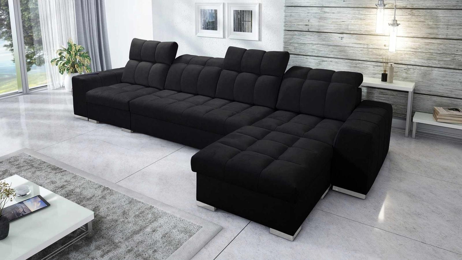 Ecksofa Luigi XII in schwarz mit verstellbaren Kopfstützen ist ein stilvolles Möbelstück mit der Garantie für höchsten Komfort und Funktionalität.