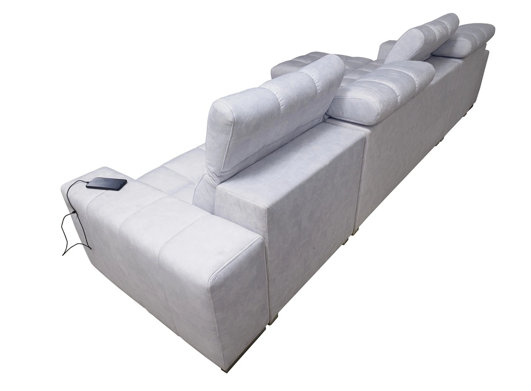 Die Extras dieses Möbels, die alle Nutzer zu schätzen wissen werden, sind die Bettzeugbehälter, die Schlaffunktion und die USB-Ladebuchse an der Seite des Eckschranks.