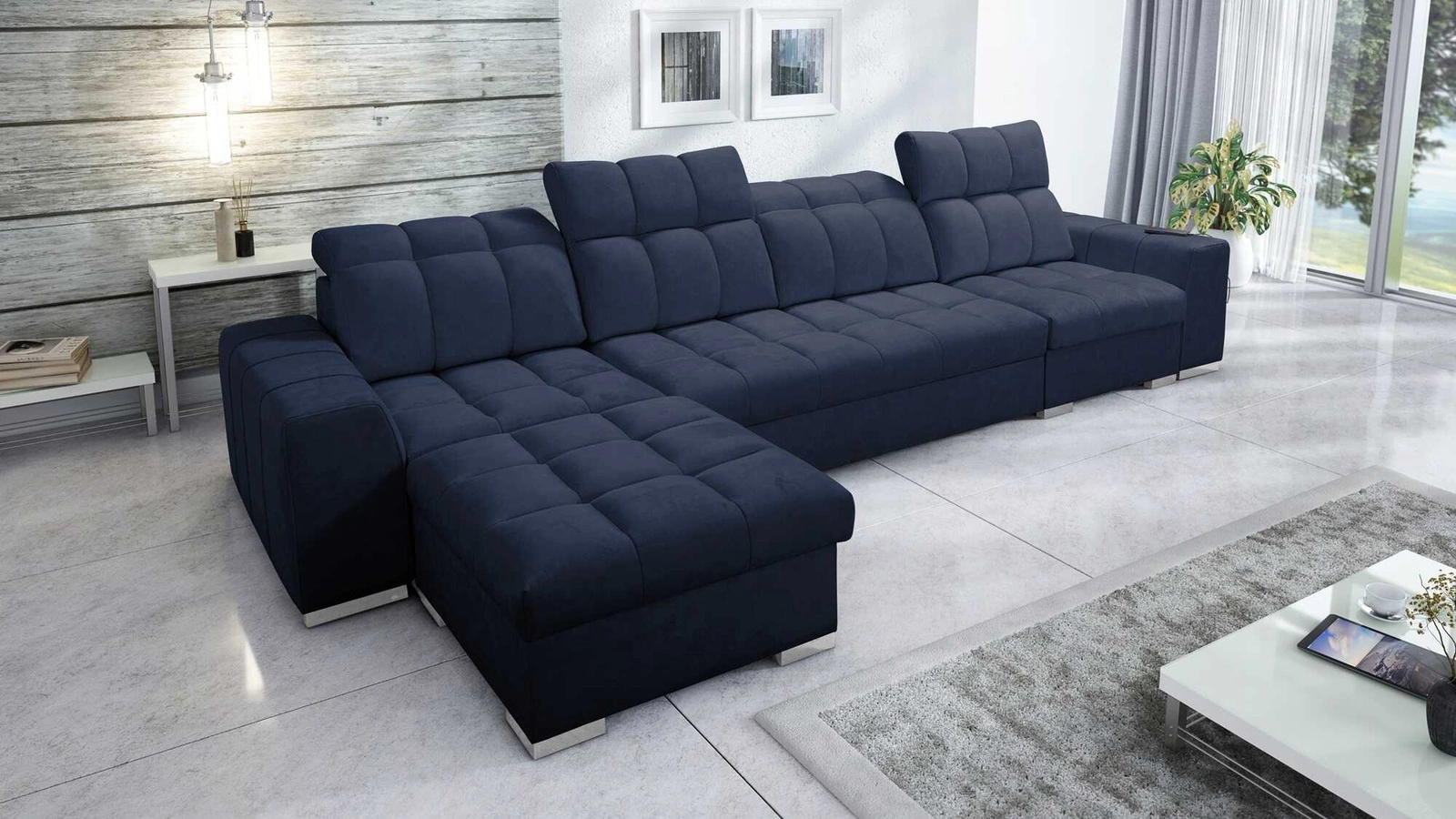 Ecksofa mit Schlaffunktion Luigi XII marineblau linke stilvolles Ecksofa für das Wohnzimmer in einer minimalistischen und eleganten Ausführung