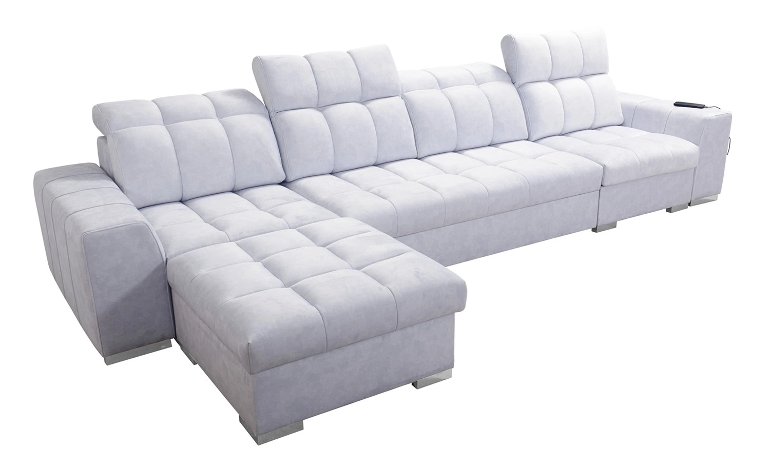Die Extras dieses Möbels, die alle Nutzer zu schätzen wissen werden, sind die Bettzeugbehälter, die Schlaffunktion und die USB-Ladebuchse an der Seite des Eckschranks.