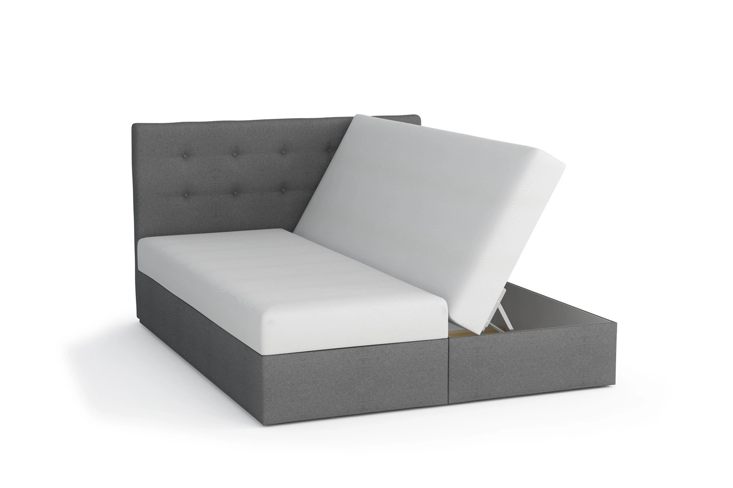 Sie können darauf sitzen, zum Beispiel beim Fernsehen, beim Arbeiten am Laptop oder beim Lesen eines Buches. Die Standardausstattung des Polsterbettes Luton umfasst zwei Matratzen bonell, das sich durch seine Oberflächenelastizität auszeichnet, wodurch die Matratze für Personen mit einem breiten Gewichtsbereich geeignet ist.