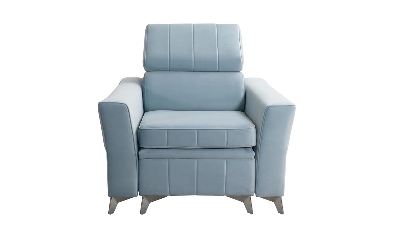 • Der Sessel Rava ist ein modernes und funktionelles Möbelstück in einer eleganten Form. Die Möbel sind mit einer verstellbaren Kopfstütze und einem großen Staufach zur einfachen Aufbewahrung ausgestattet. Der Sessel ist mit einem weichen und samtigen Stoff