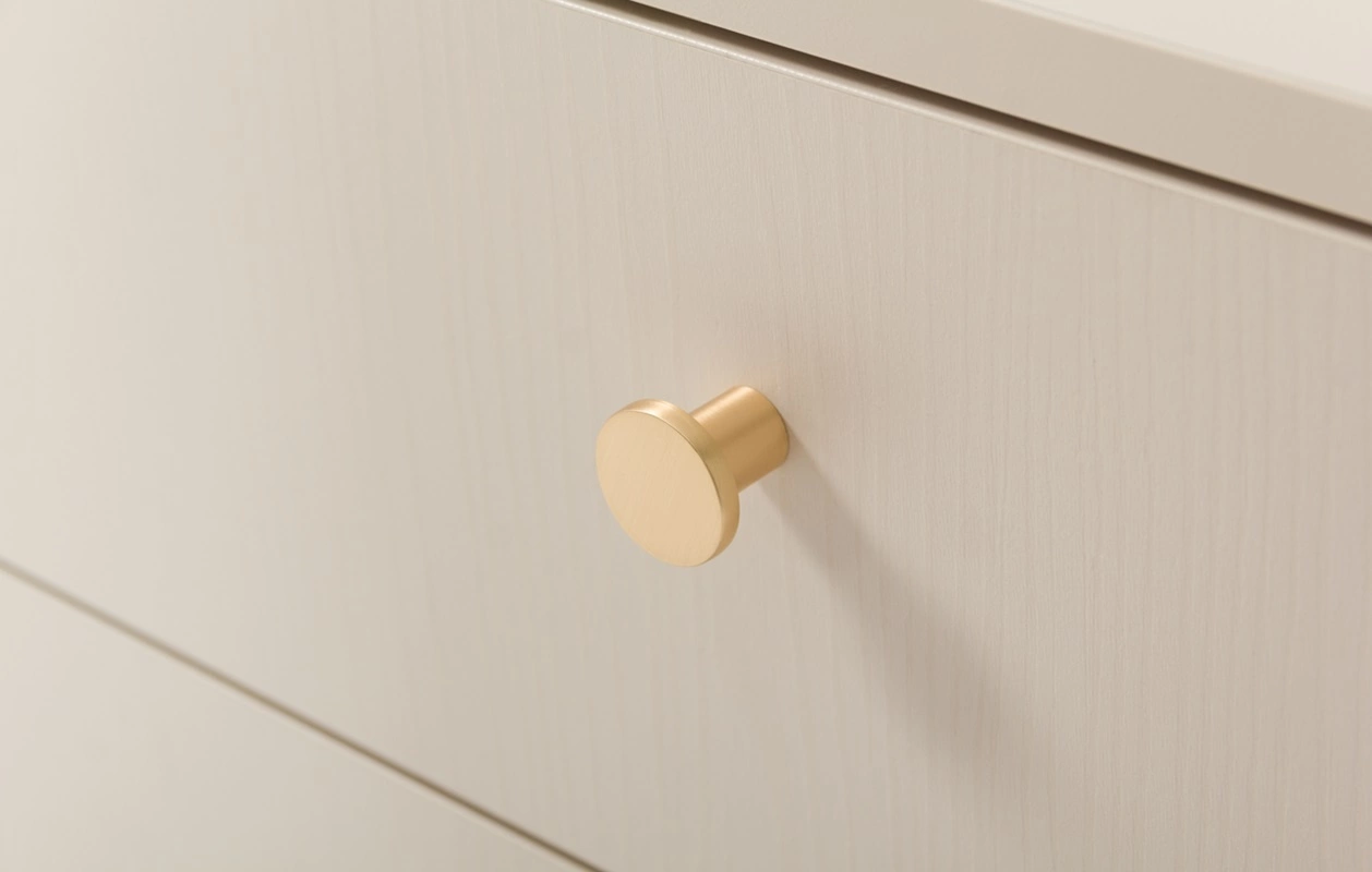 - Die Kommode Ferdi ist ein einfaches, aber sehr elegantes und originelles Möbelstück. Die Struktur des Holzes in einem sandigen Beigeton harmoniert perfekt mit den goldenen Akzenten und verleiht den Möbeln einen subtilen Charakter. Die hohen Kanten der Pla
