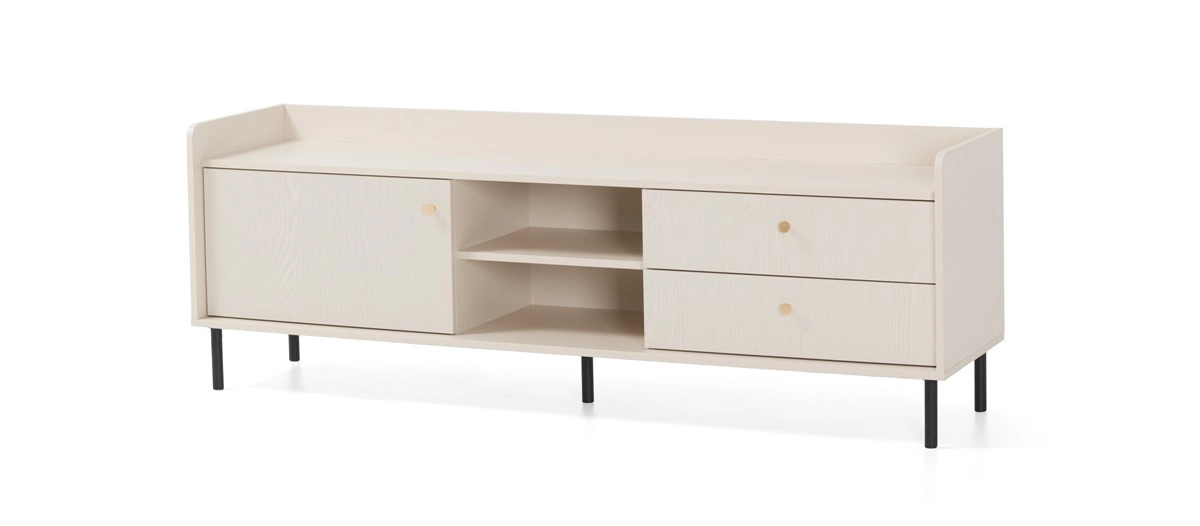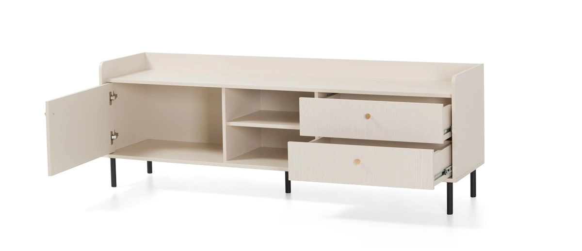 TV Schrank Ferdi 170 cm sandbeige eleganter TV-Schrank in einem modischen Stil Korpus über die Linie der Tischplatte verlängert