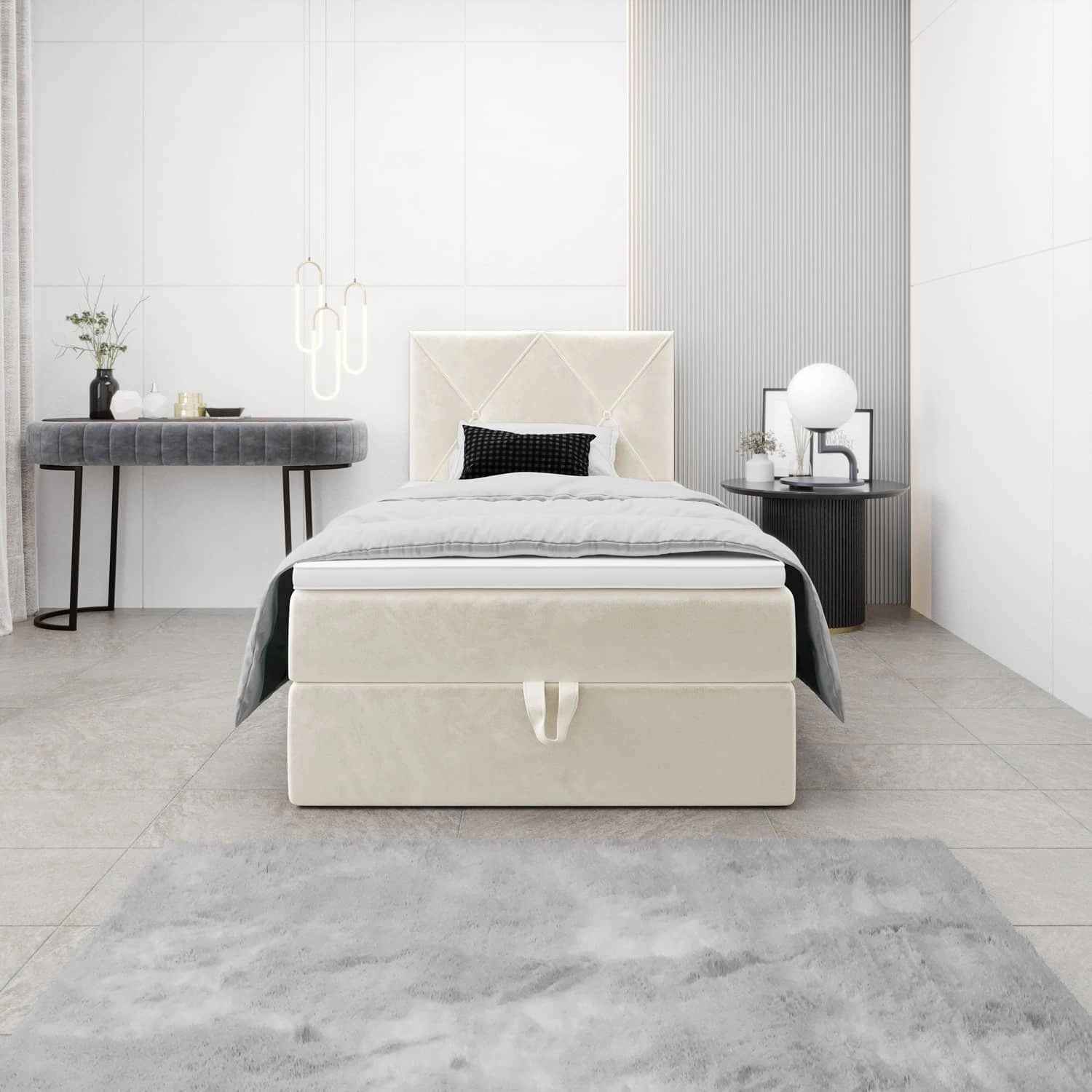 Boxspringbett Arvada 120x200 beige im modernen skandinavischen Stil mit gepolstertem Kopfteil Bett mit Staukasten