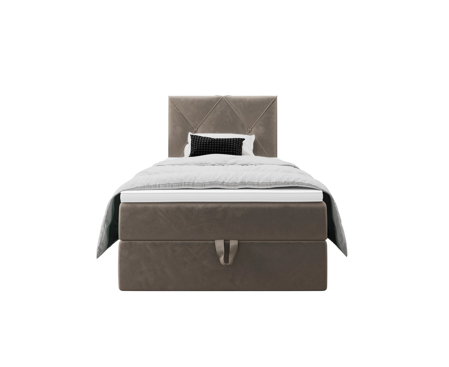 Boxspringbett Arvada 90x200 hellbraun im modernen skandinavischen Stil mit gepolstertem Kopfteil Bett mit Staukasten