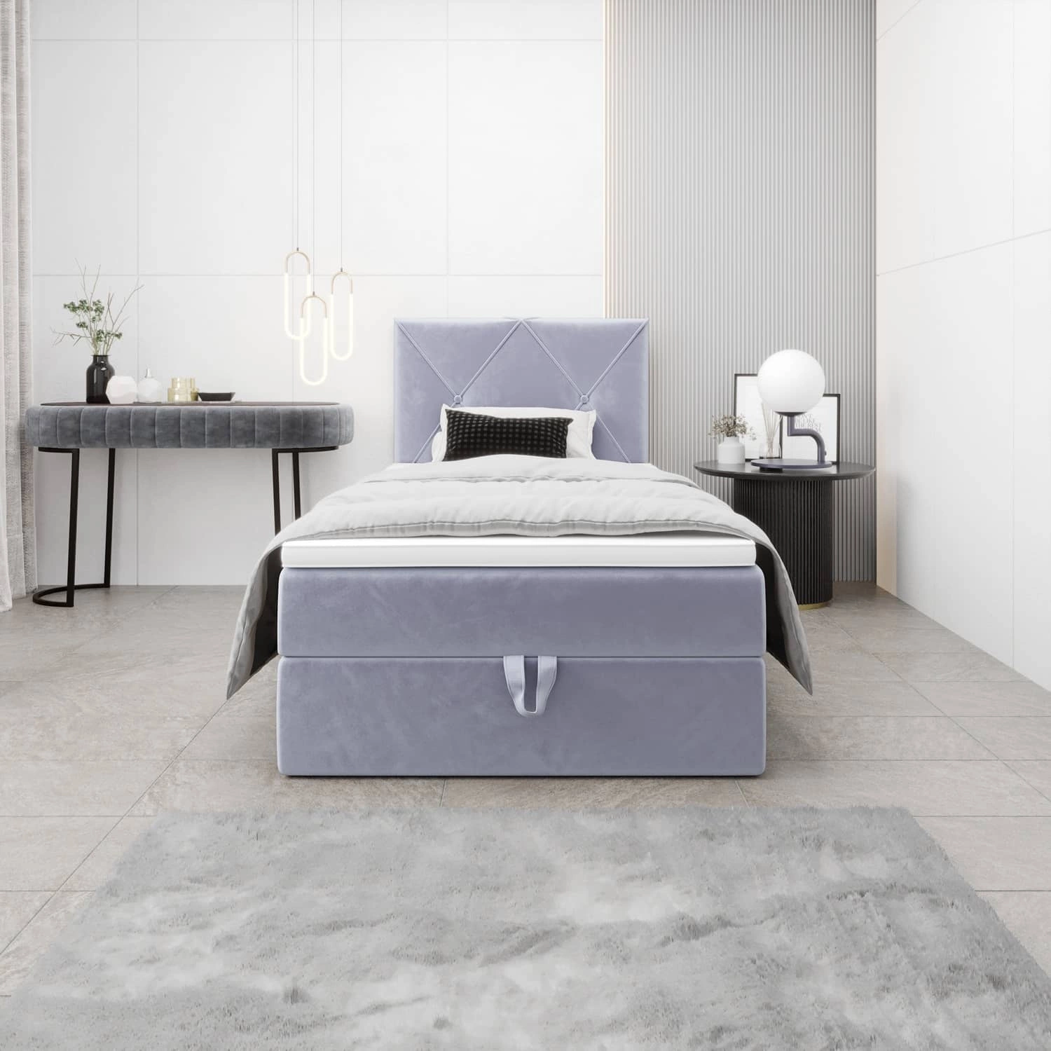 Das Boxspringbett Arvada 100x200 in hellblau ist die perfekte Wahl für jedes Schlafzimmer oder Jugendzimmer.