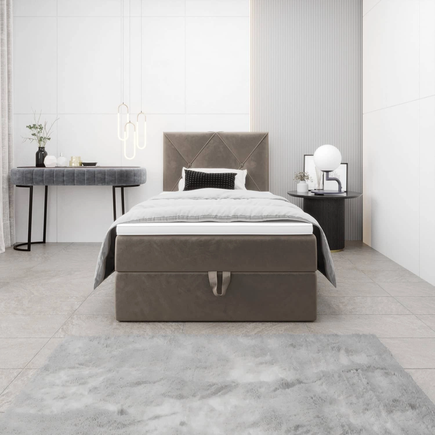 Boxspringbett Arvada 120x200 hellbraun im modernen skandinavischen Stil mit gepolstertem Kopfteil Bett mit Staukasten