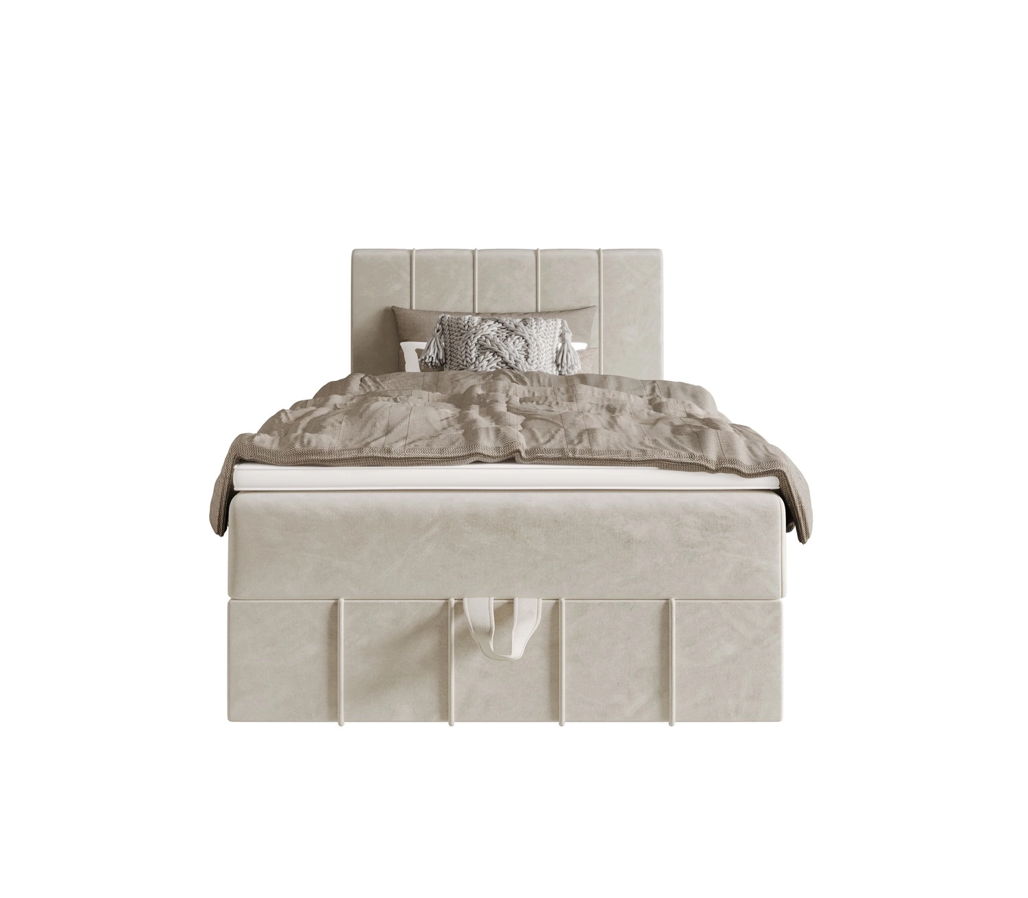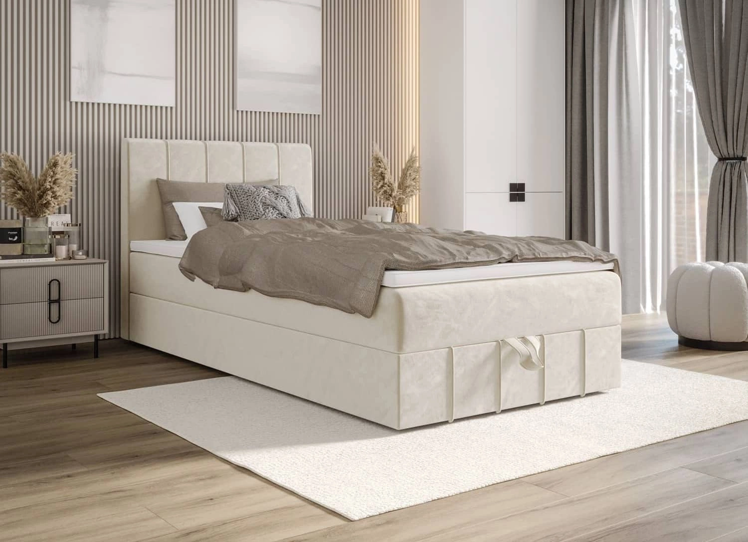 Boxspringbett Casey 100x200 beige im modernen skandinavischen Stil mit gepolstertem Kopfteil Bett mit Staukasten