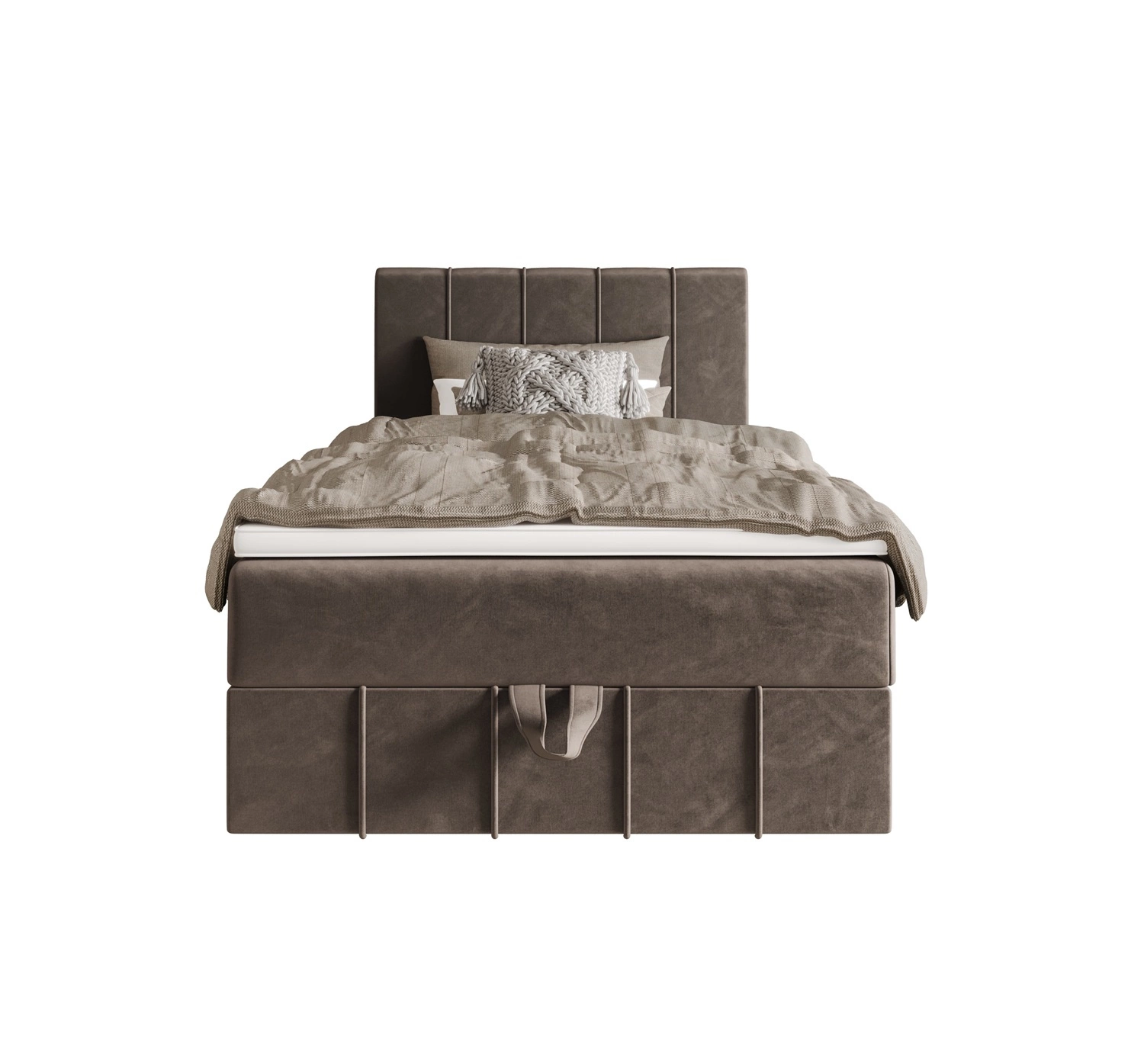 Boxspringbett Casey 100x200 hellbraun im modernen skandinavischen Stil mit gepolstertem Kopfteil Bett mit Staukasten