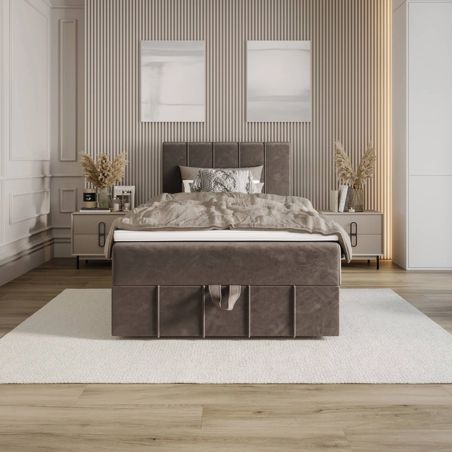Für zusätzliche Funktionalität ist das Kontinentalbett mit einem einem großen Behälter, für die bequeme Aufbewahrung von wichtigem Zubehör. Der Zugang zum Bettkasten erfolgt durch Anheben der Matratze an der Vorderseite. Zuverlässige automatische Hebehilfen erleichtern die Arbeit.