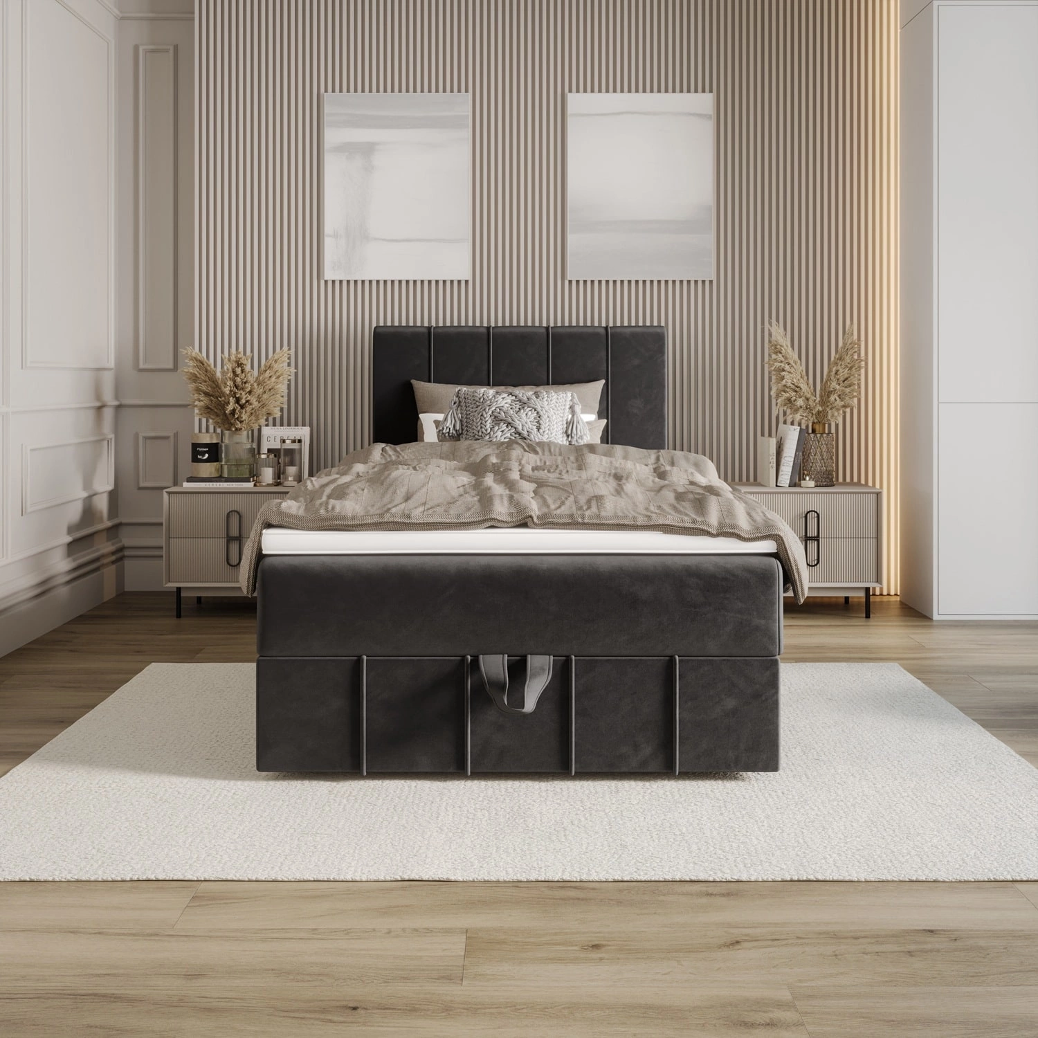 Boxspringbett Casey 100x200 grau Bett im modernen skandinavischen Stil mit gepolstertem Kopfteil Bett mit Staukasten