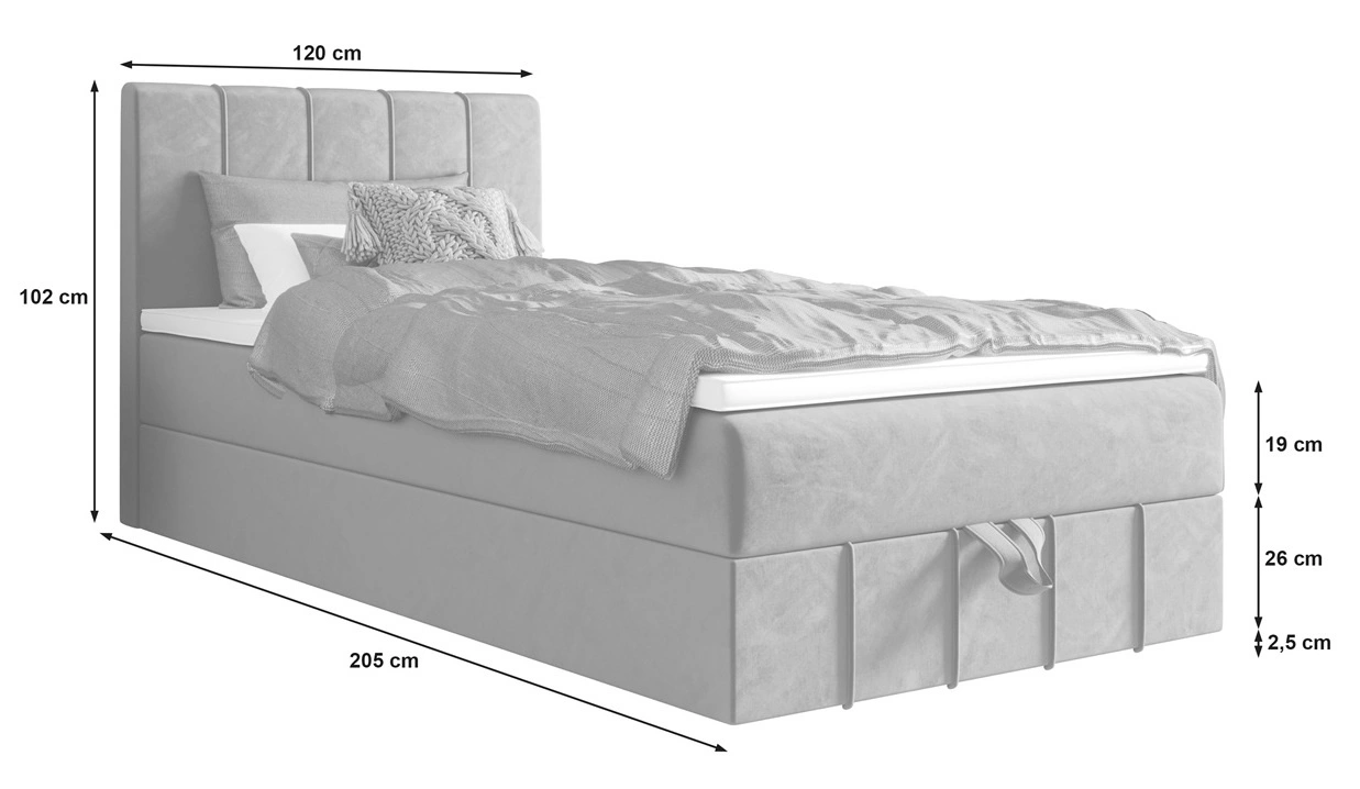 - Das Boxspringbett Casey ist die perfekte Wahl für ein Jugendzimmer oder ein kleineres Schlafzimmer. Das Design des Bettes bietet große Stabilität und Komfort bei der Benutzung. Die Nähte an der Kopfstütze sind ein Blickfang.