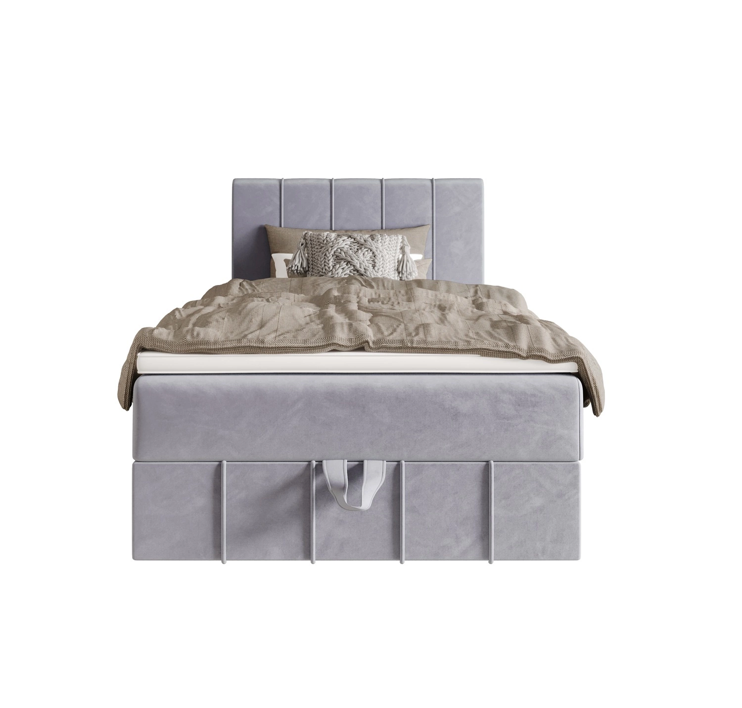 Boxspringbett Casey 120x200 blau im modernen skandinavischen Stil mit gepolstertem Kopfteil Bett mit Staukasten