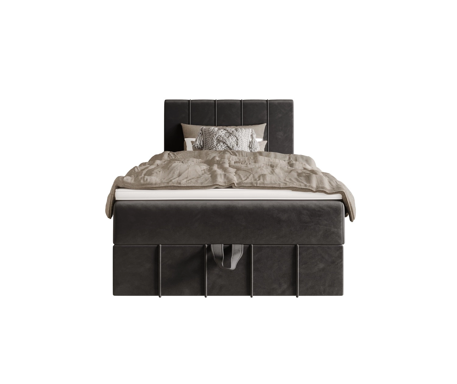 Boxspringbett Casey 120x200 grau im modernen skandinavischen Stil mit gepolstertem Kopfteil Bett mit Staukasten