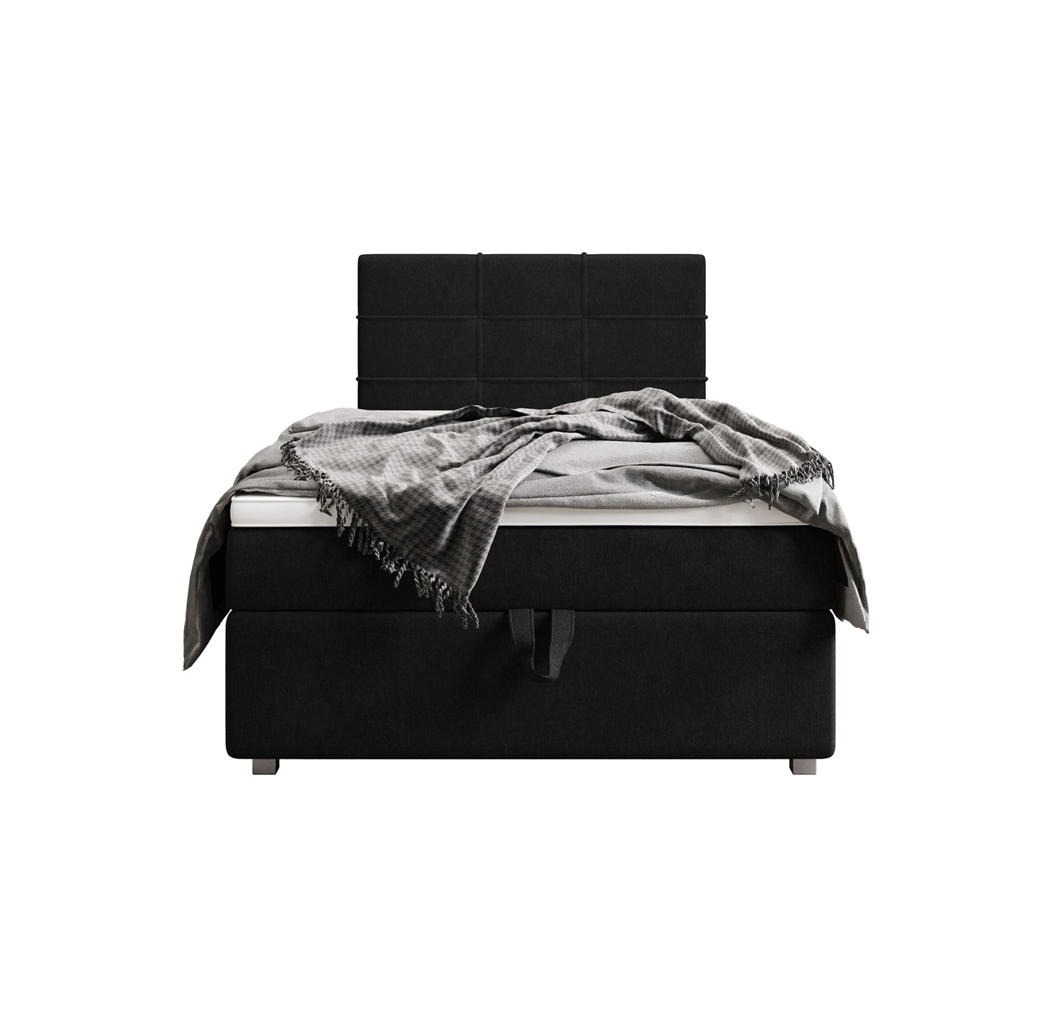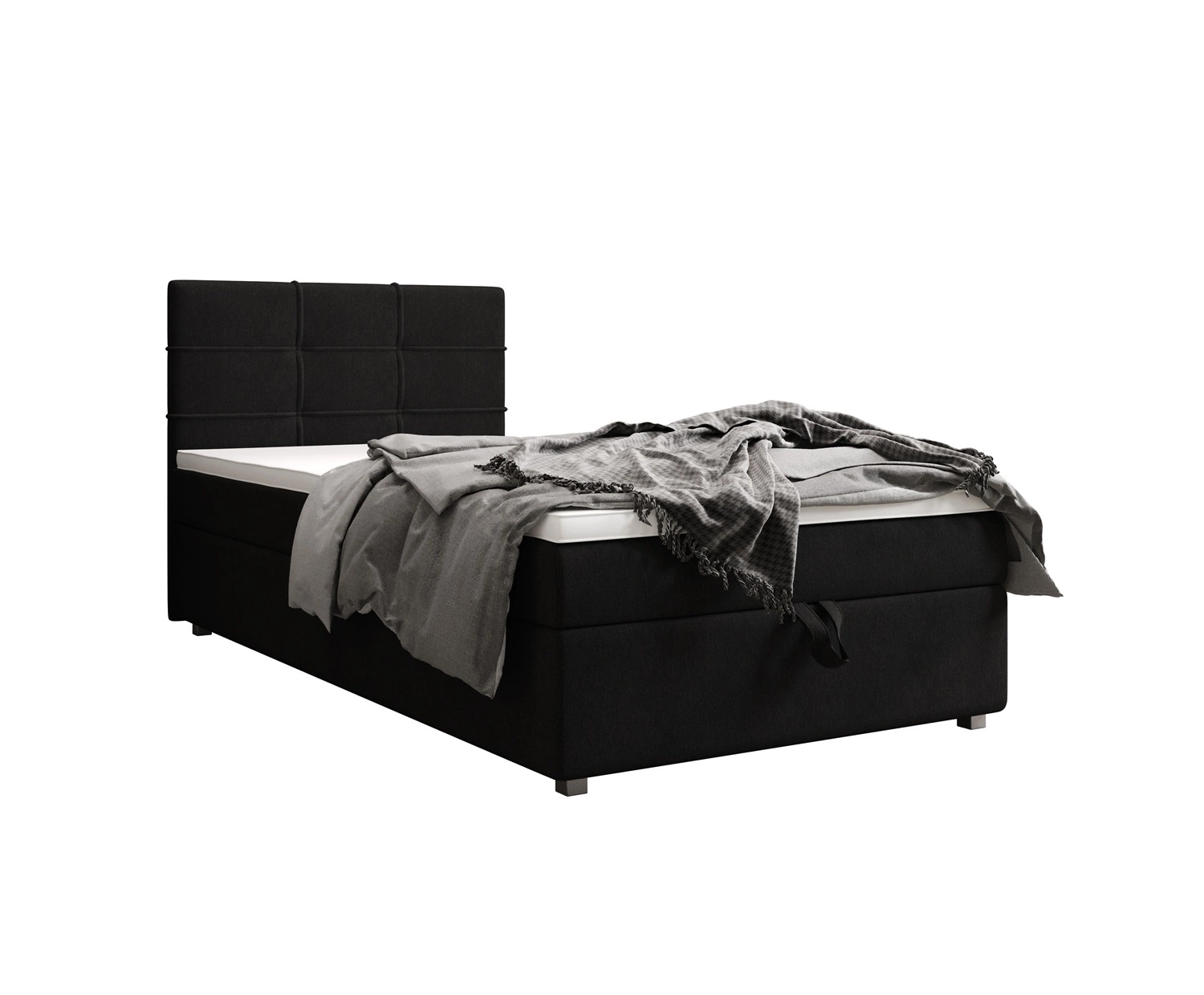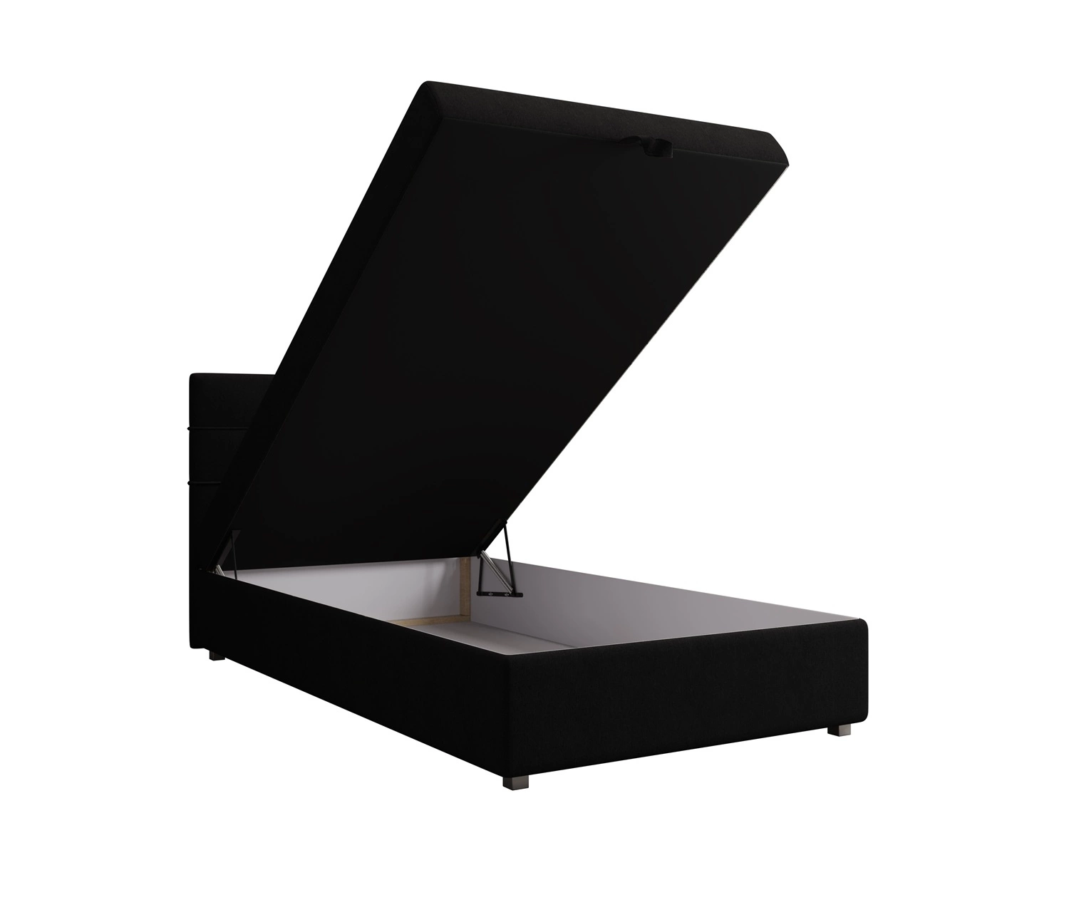 Boxspringbett Fresno 90x200 schwarz im modernen skandinavischen Stil mit gepolstertem Kopfteil Bett mit Staukasten