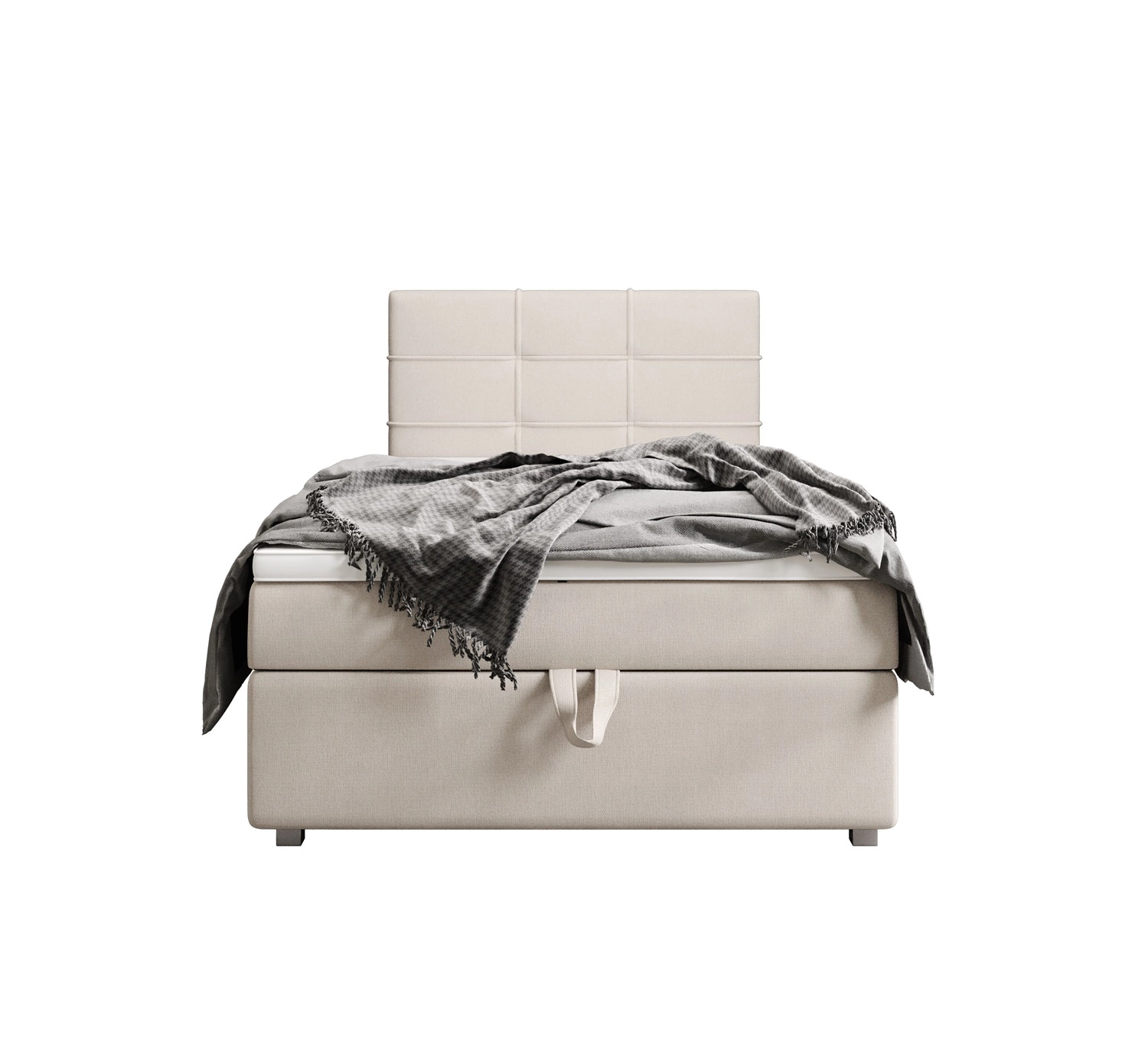Boxspringbett Fresno 100x200 beige im modernen skandinavischen Stil mit gepolstertem Kopfteil Bett mit Staukasten