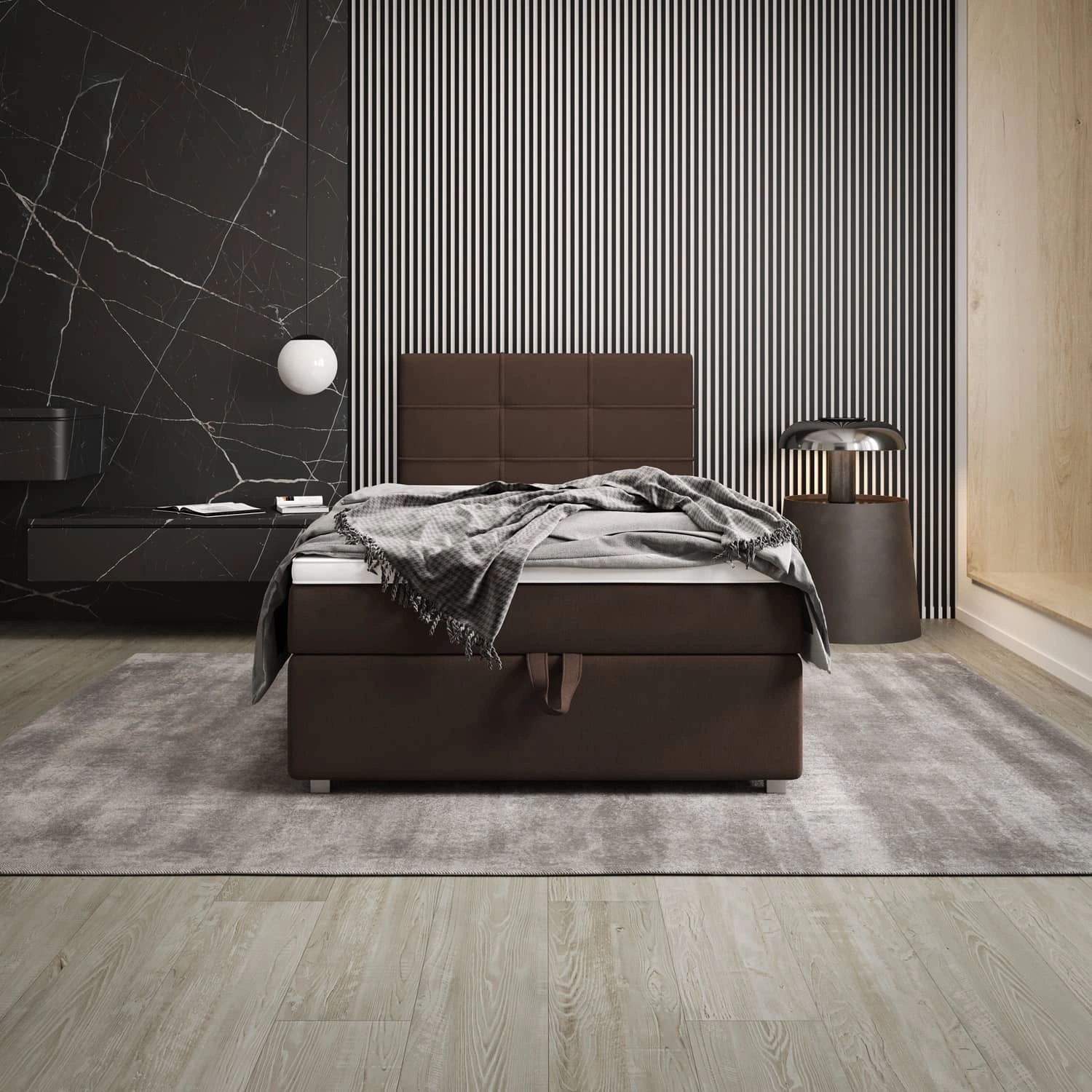 Boxspringbett Fresno 100x200 braun im modernen skandinavischen Stil mit gepolstertem Kopfteil Bett mit Staukasten
