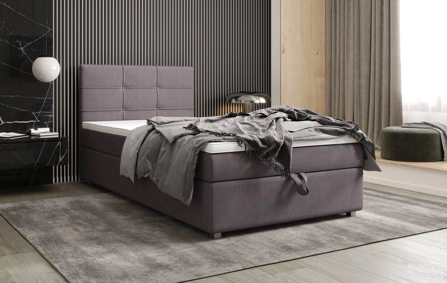 Boxspringbett Fresno 120x200 grau im modernen skandinavischen Stil mit gepolstertem Kopfteil Bett mit Staukasten