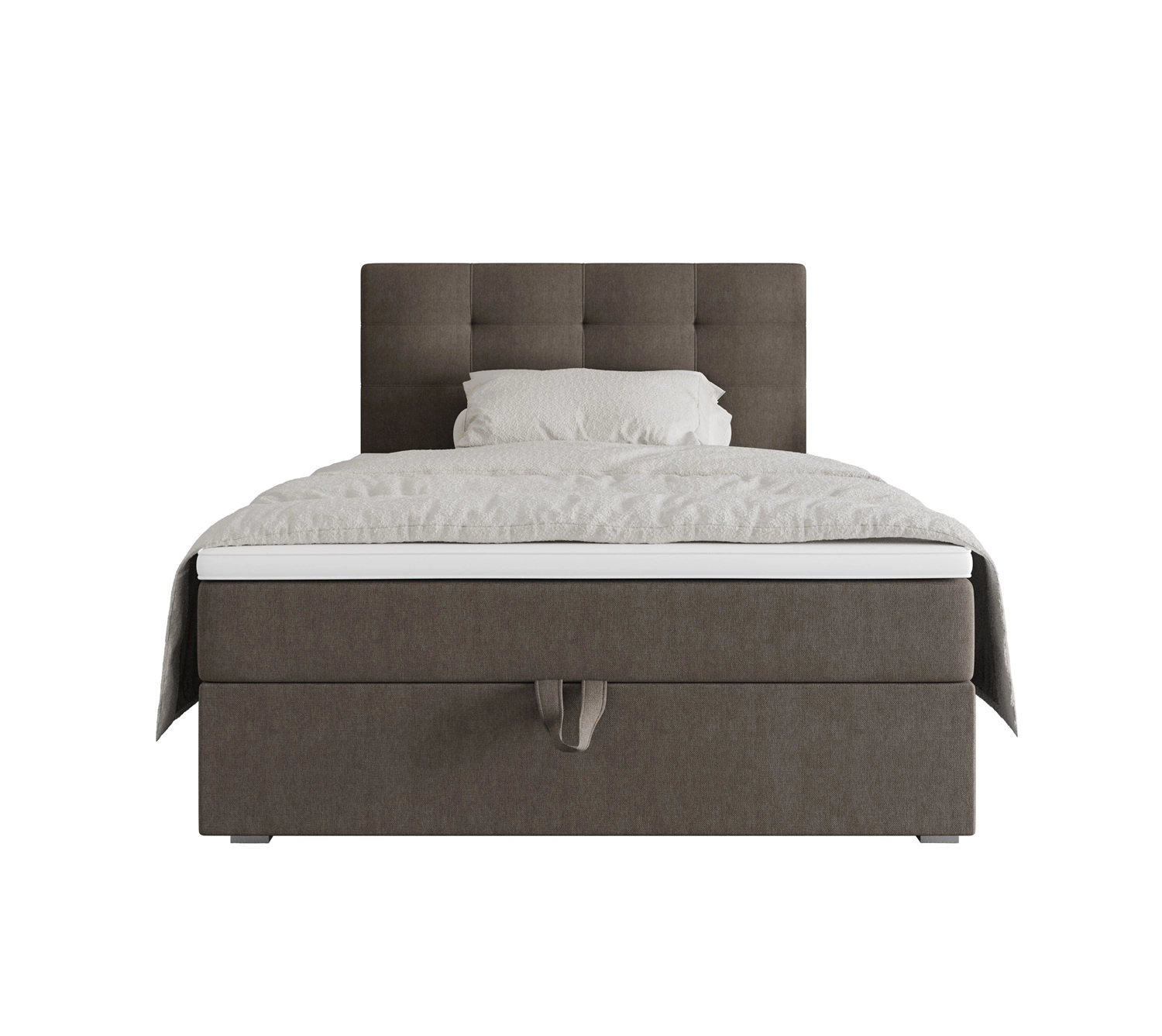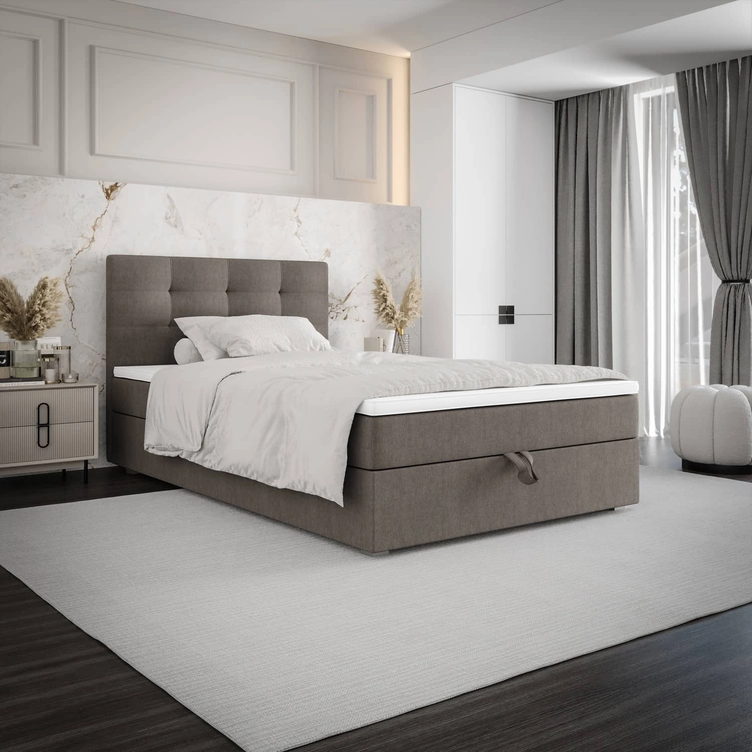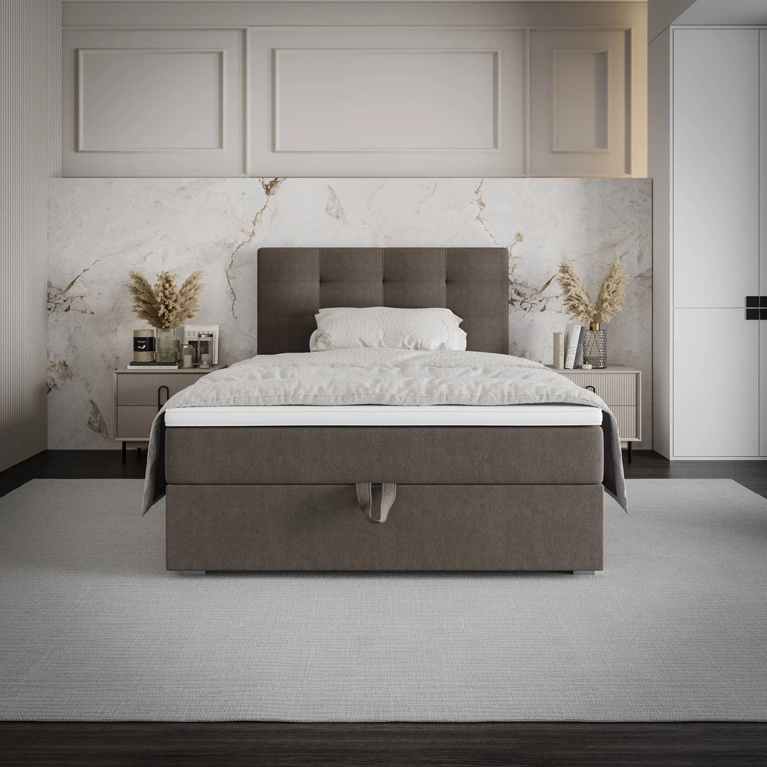 Boxspringbett Flint 90x200 hellbraun im modernen skandinavischen Stil mit gepolstertem Kopfteil Bett mit Staukasten