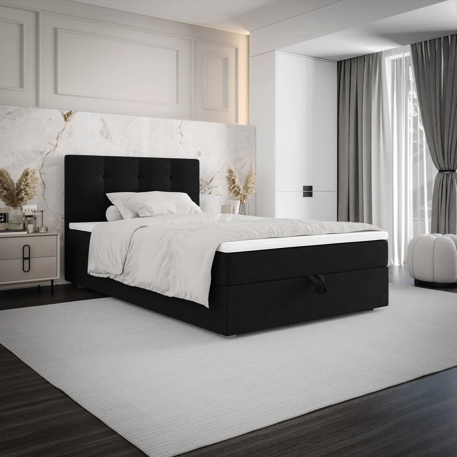 Das Flint 90x200 Kontinentalbett in Schwarz ist die perfekte Wahl für jedes Schlafzimmer oder Jugendzimmer.