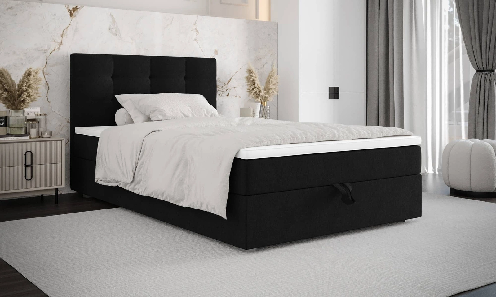 Boxspringbett Flint 90x200 schwarz im modernen skandinavischen Stil mit gepolstertem Kopfteil Bett mit Staukasten