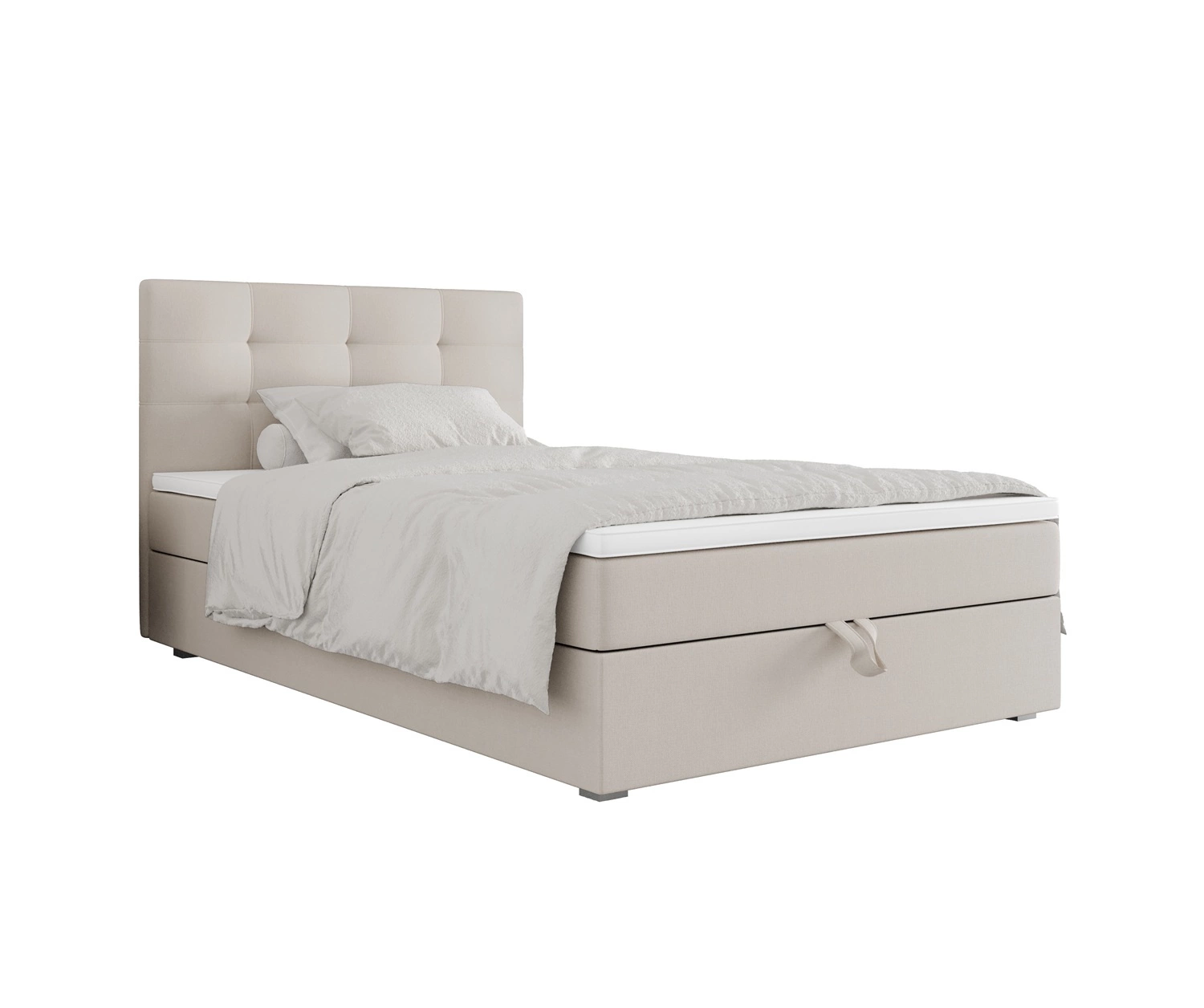 Boxspringbett Flint 120x200 beige im modernen skandinavischen Stil mit gepolstertem Kopfteil Bett mit Staukasten