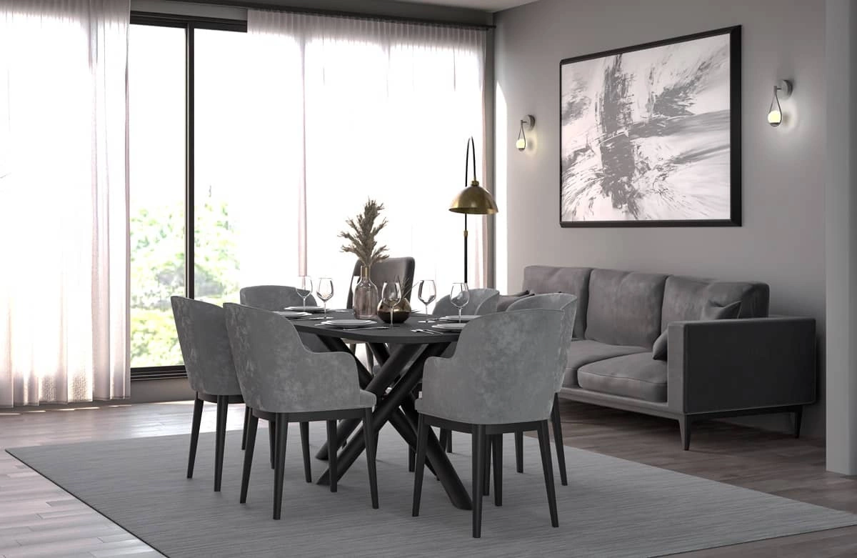 Der Tisch Lyon 90x185 cm in portland ash / schwarz ist ein stilvolles Möbelstück, das perfekt in jedes moderne Esszimmer passt.