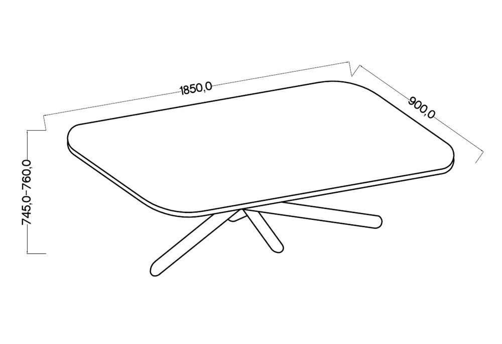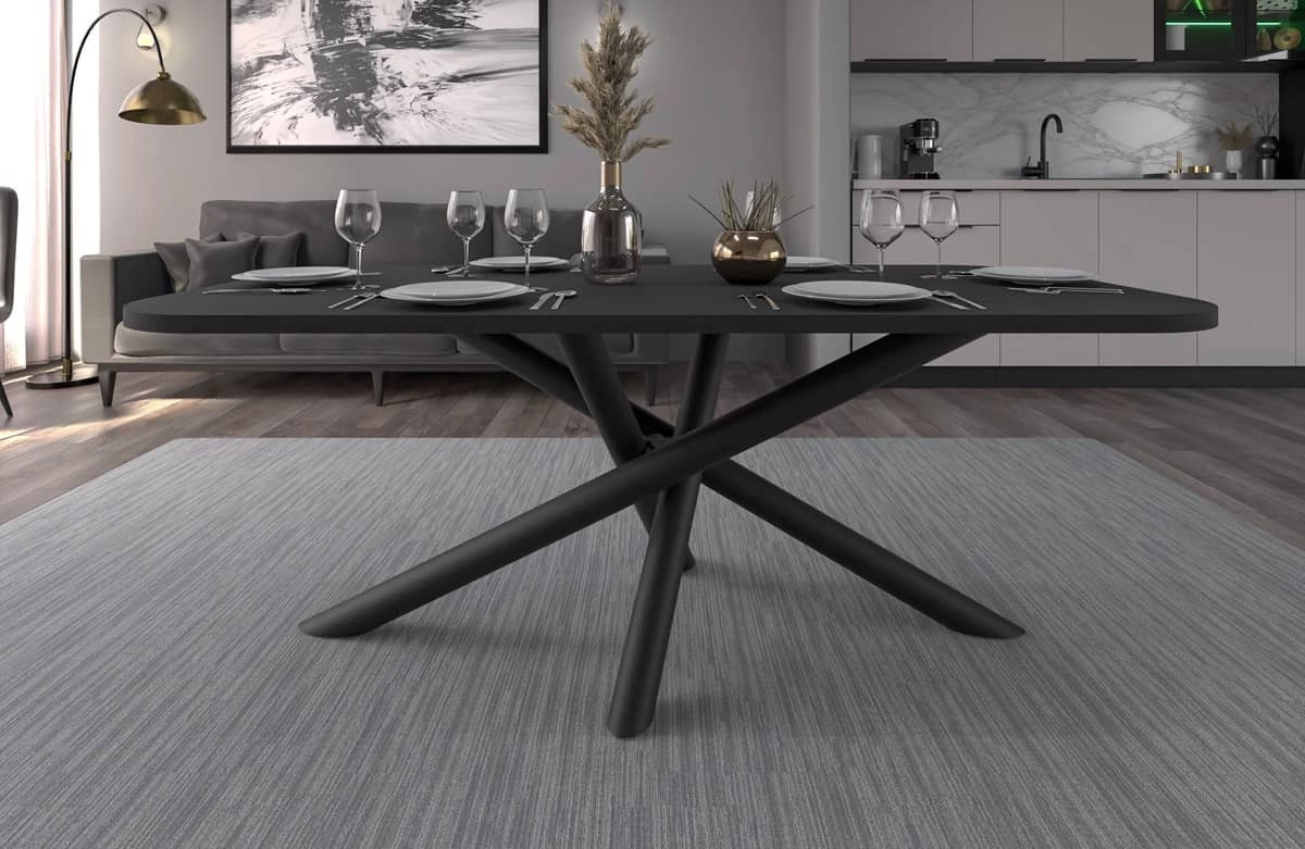 Lyon Tisch 90x185 cm portland ash / schwarz stilvoller Esstisch auf Designer-Spinnenbeinen höhenverstellbar
