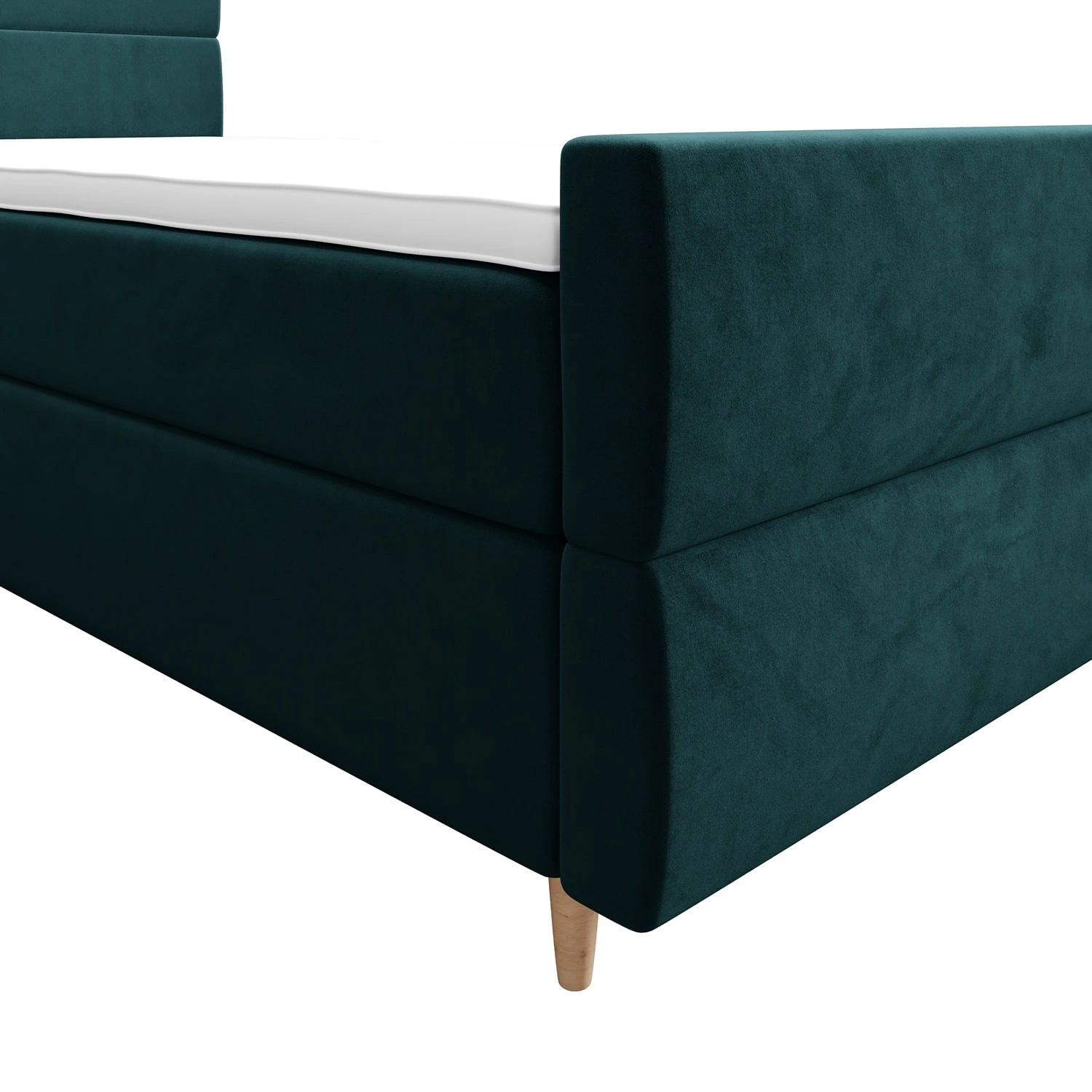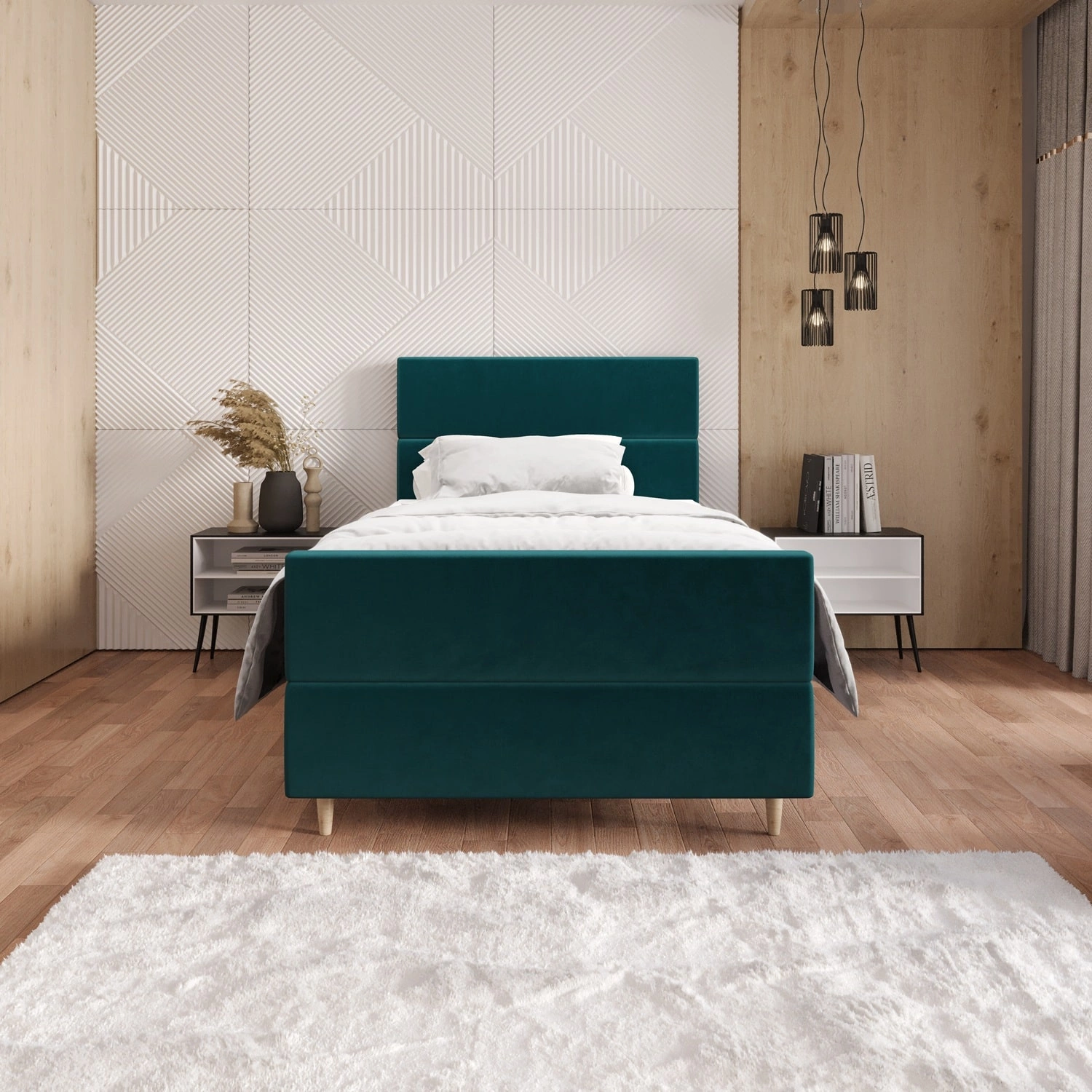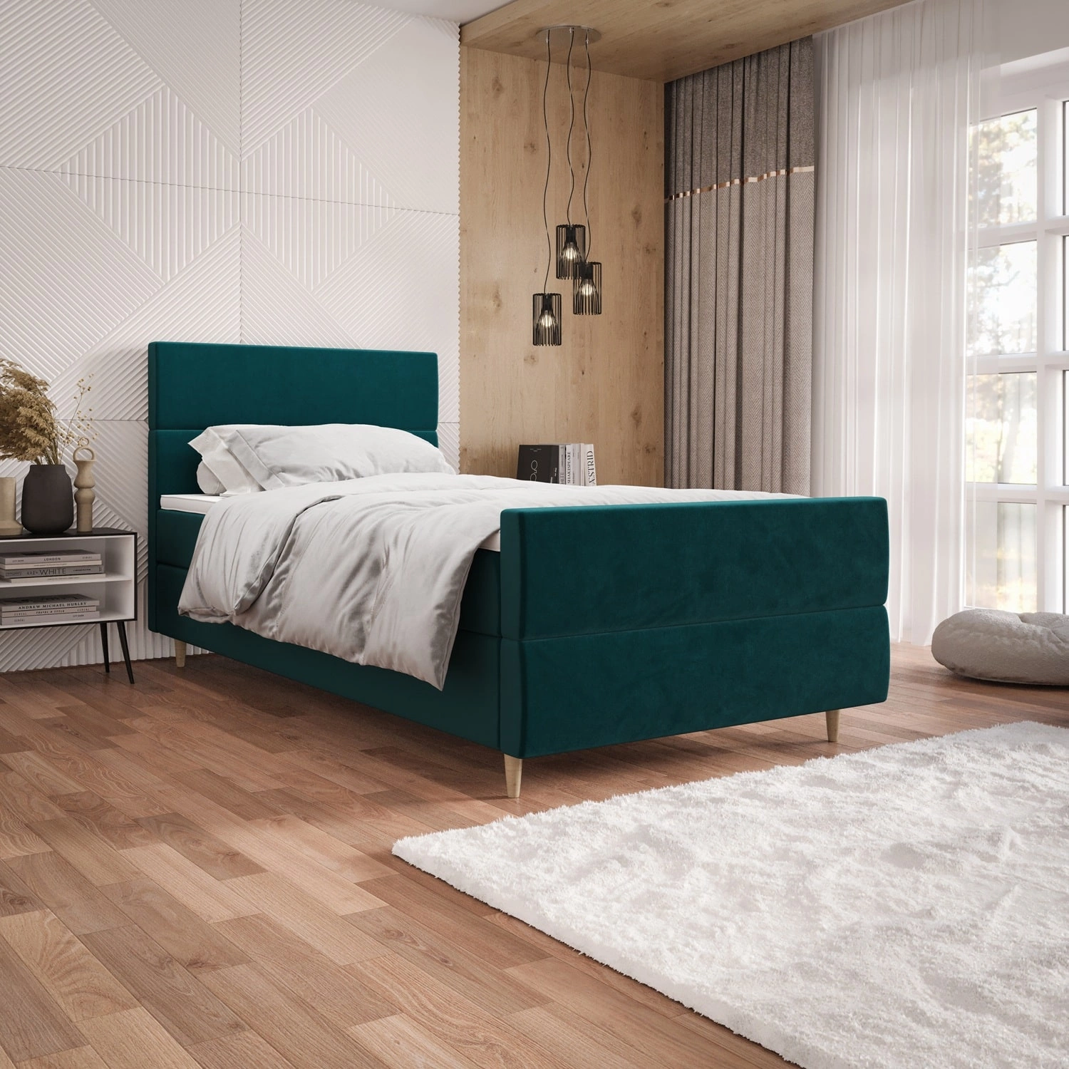 Boxspringbett Benet 100x200 türkis im modernen skandinavischen Stil mit gepolstertem Kopf- und Fußteil Bett mit Staukasten