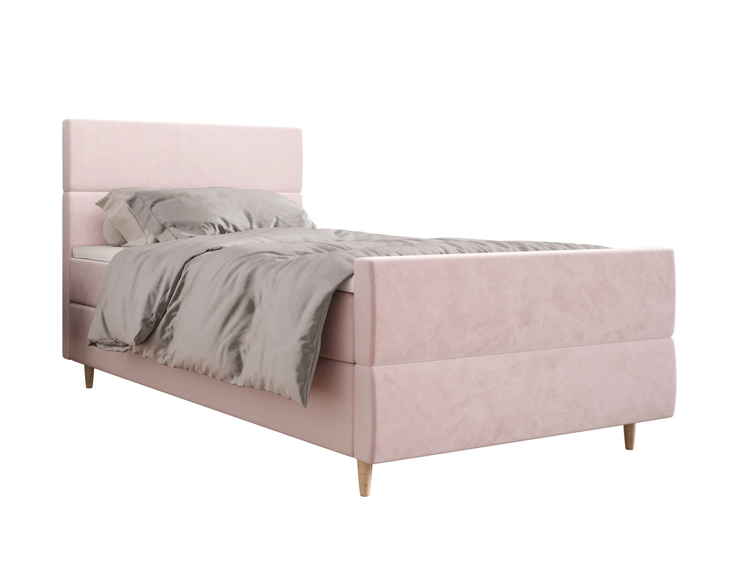 Boxspringbett Benet 100x200 puderrosa im modernen skandinavischen Stil mit gepolstertem Kopf- und Fußteil Bett mit Staukasten