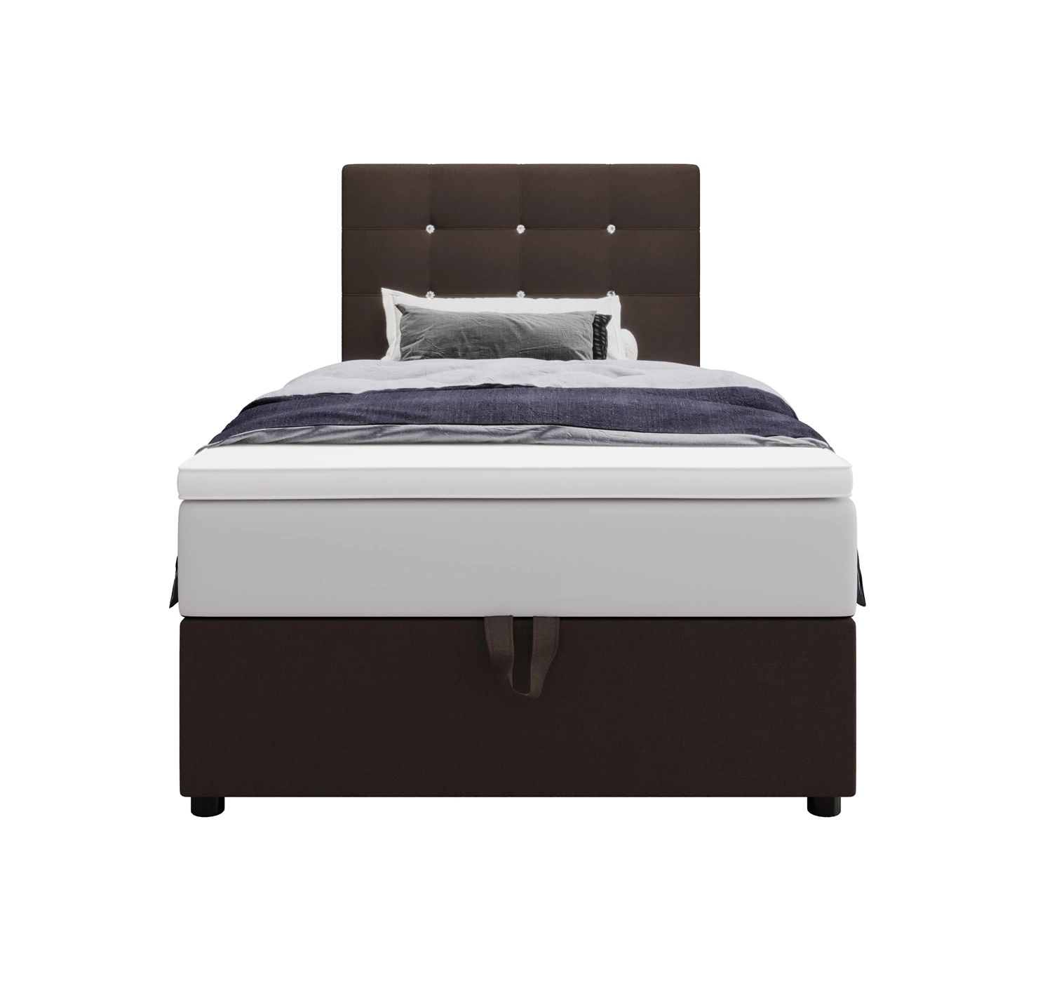 Boxspringbett Kingston 90x200 braun Bett im modernen skandinavischen Stil mit gepolstertem Kopfteil mit Kristallen Bett mit Staukasten