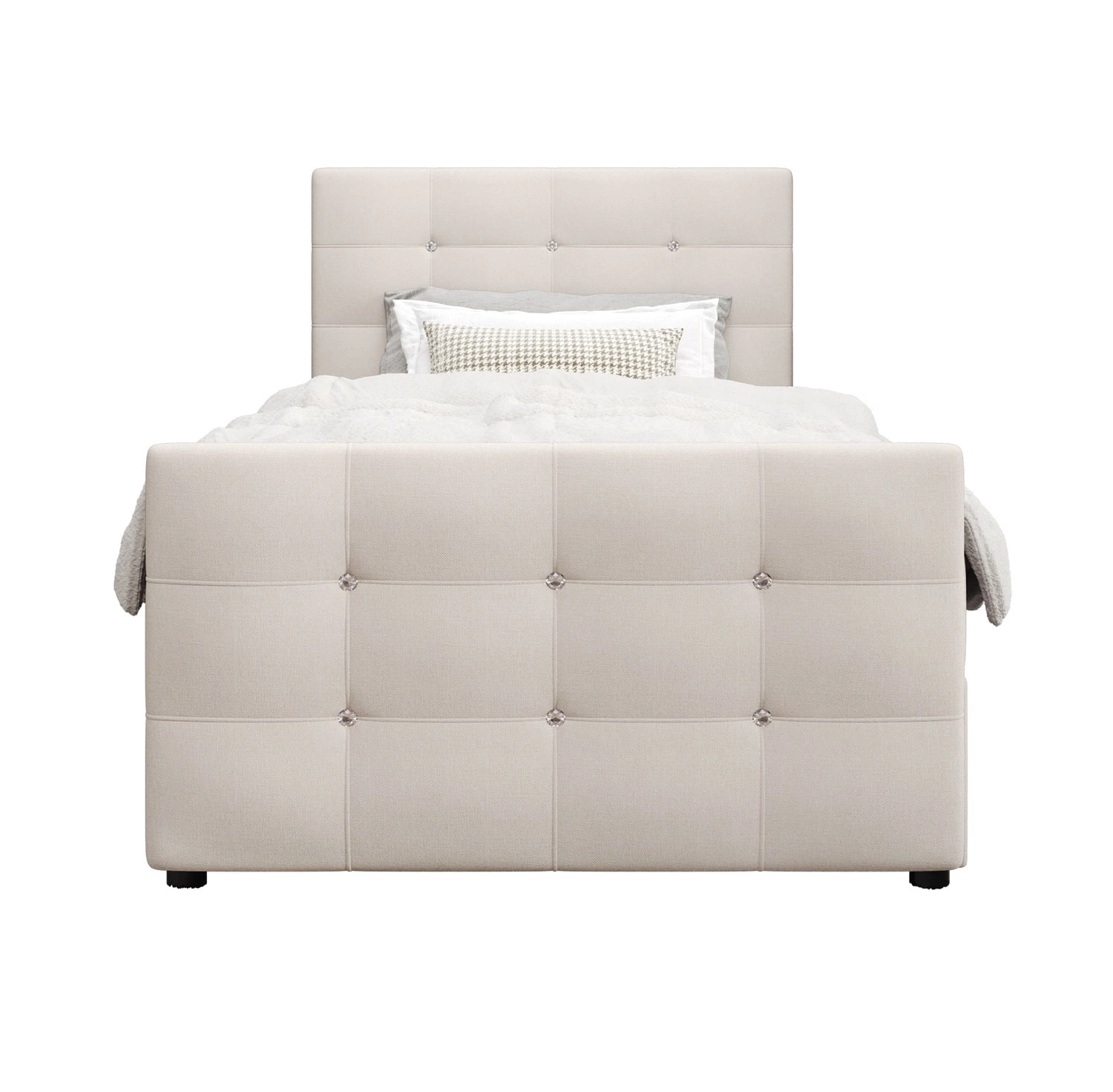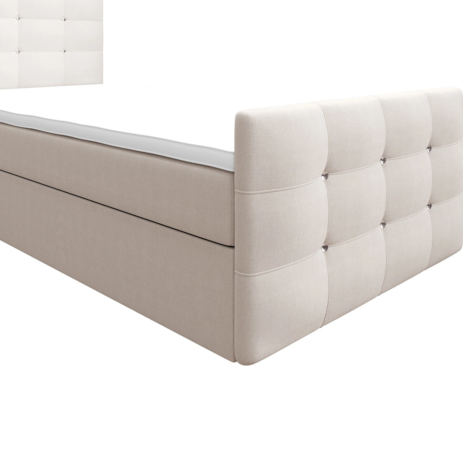 Boxspringbett Kansas 90x200 beige Bett im modernen skandinavischen Stil mit gepolstertem Kopf- und Fußteil