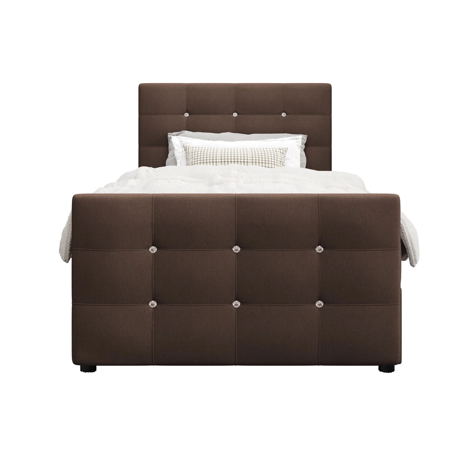 Boxspringbett Kansas 100x200 braun Bett im modernen skandinavischen Stil mit gepolstertem Kopf- und Fußteil