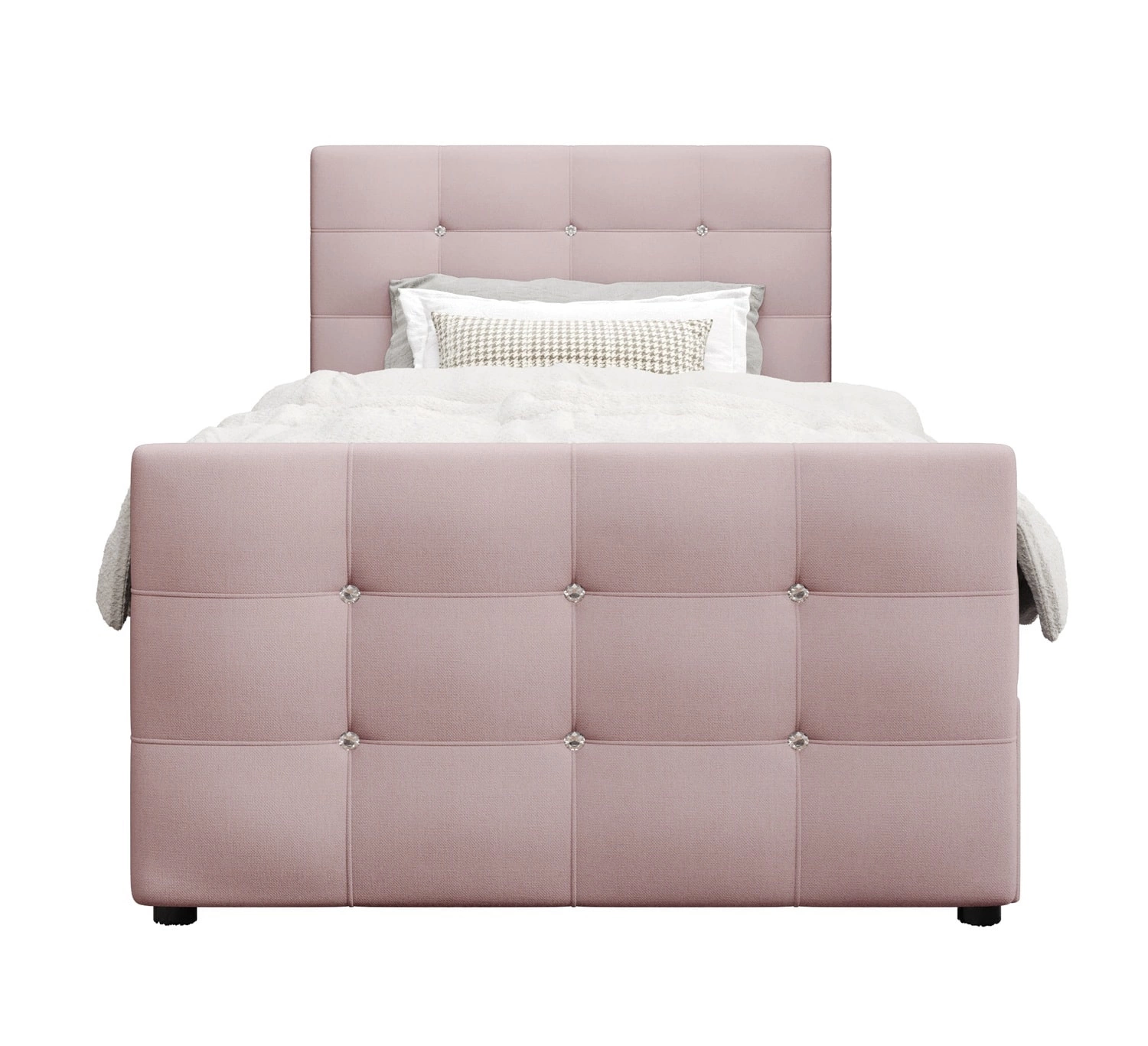 Boxspringbett Kansas 120x200 puderrosa Bett im modernen skandinavischen Stil mit gepolstertem Kopf- und Fußteil