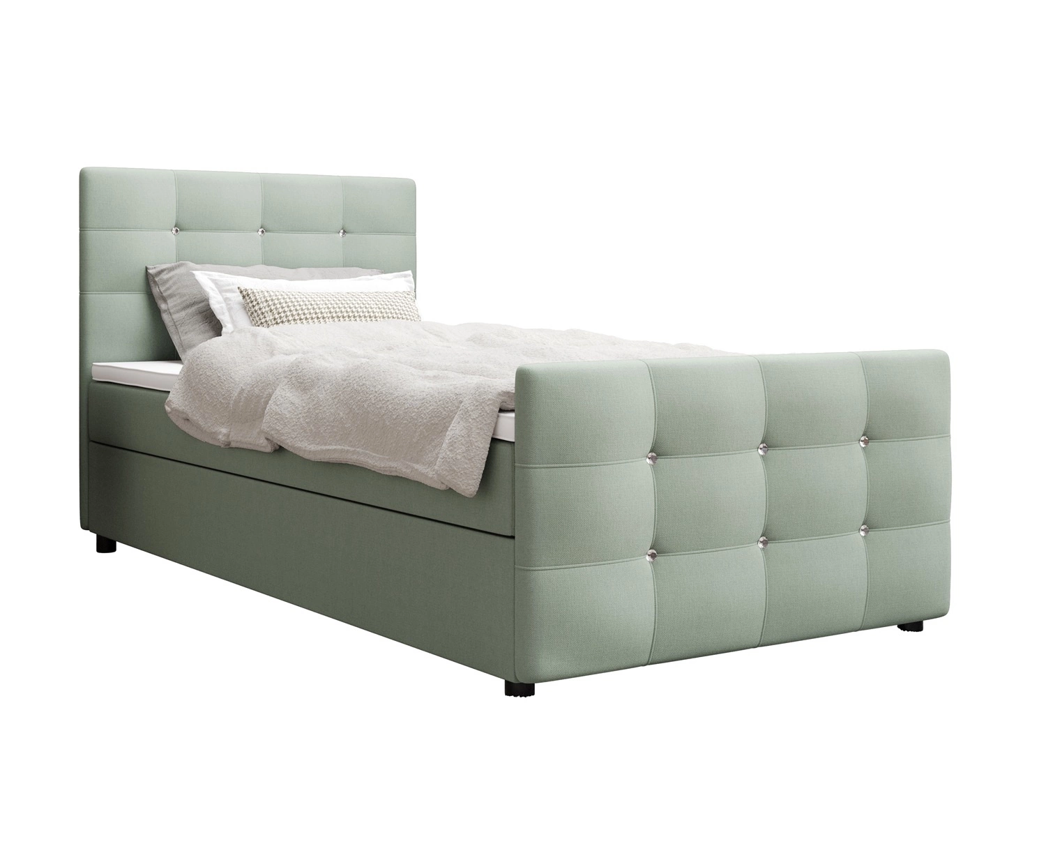 Boxspringbett Kansas 120x200 mintgrün Bett im modernen skandinavischen Stil mit gepolstertem Kopf- und Fußteil