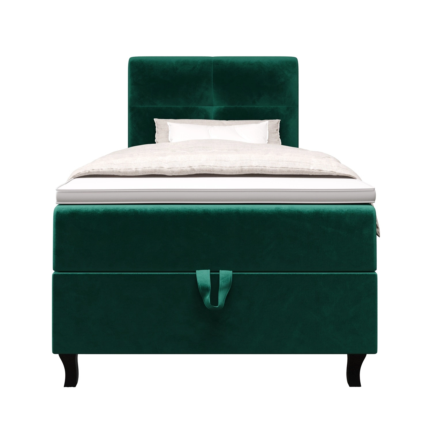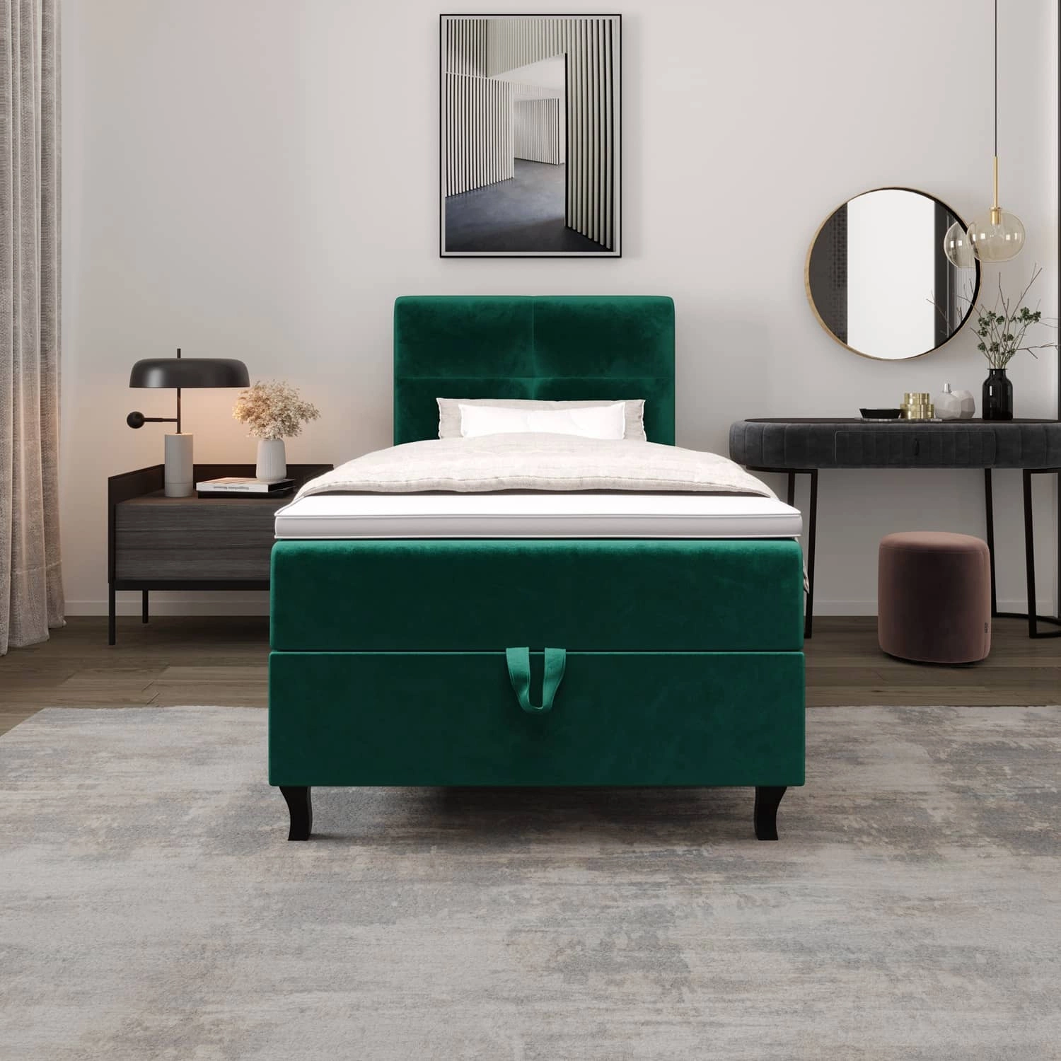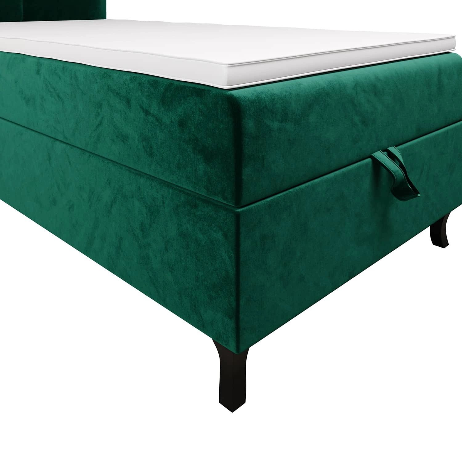 Boxspringbett Melba 90x200 flaschengrün Bett im modernen skandinavischen Stil mit gepolstertem Kopfteil Bett mit Staukasten