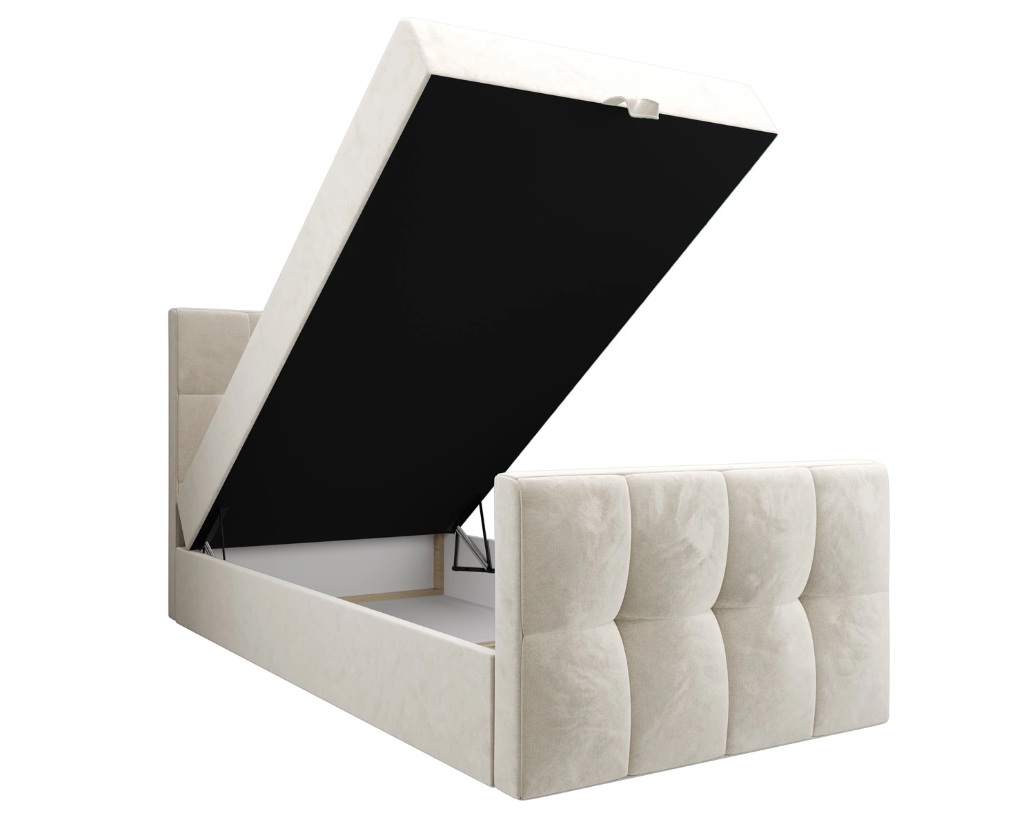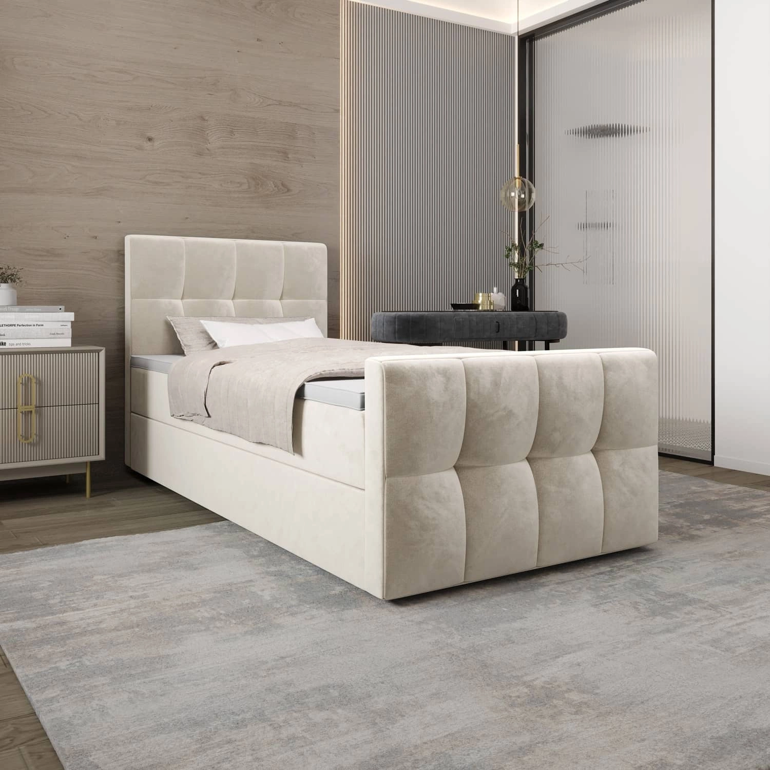 Boxspringbett Manhattan 90x200 beige Bett im modernen skandinavischen Stil mit gepolstertem Kopf- und Fußteil Bett mit Staukasten
