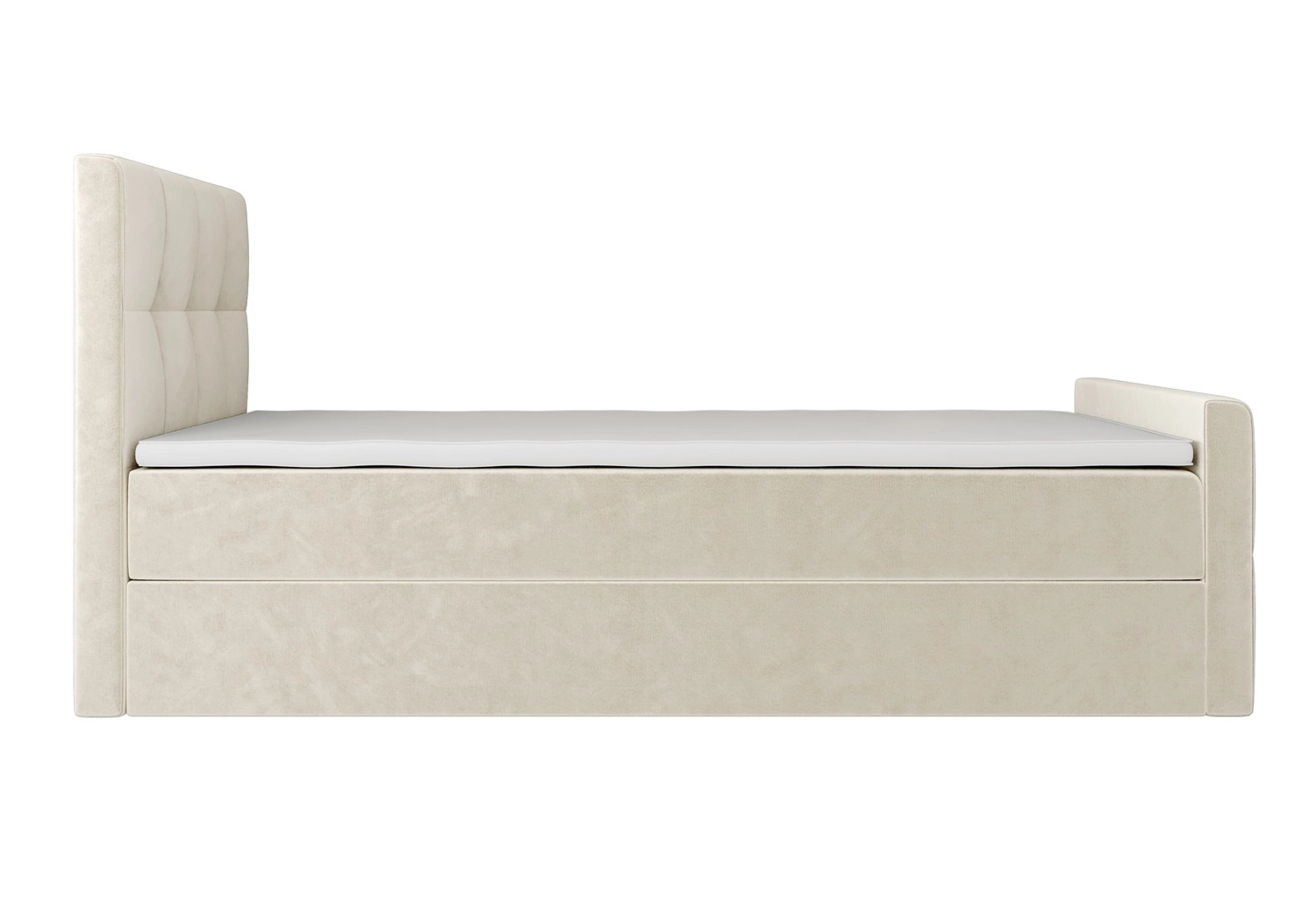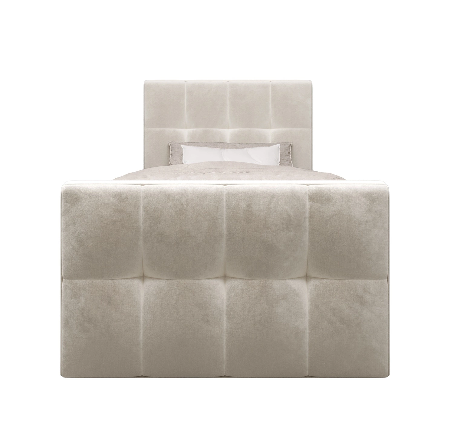 Boxspringbett Manhattan 100x200 beige Bett im modernen skandinavischen Stil mit gepolstertem Kopf- und Fußteil Bett mit Staukasten