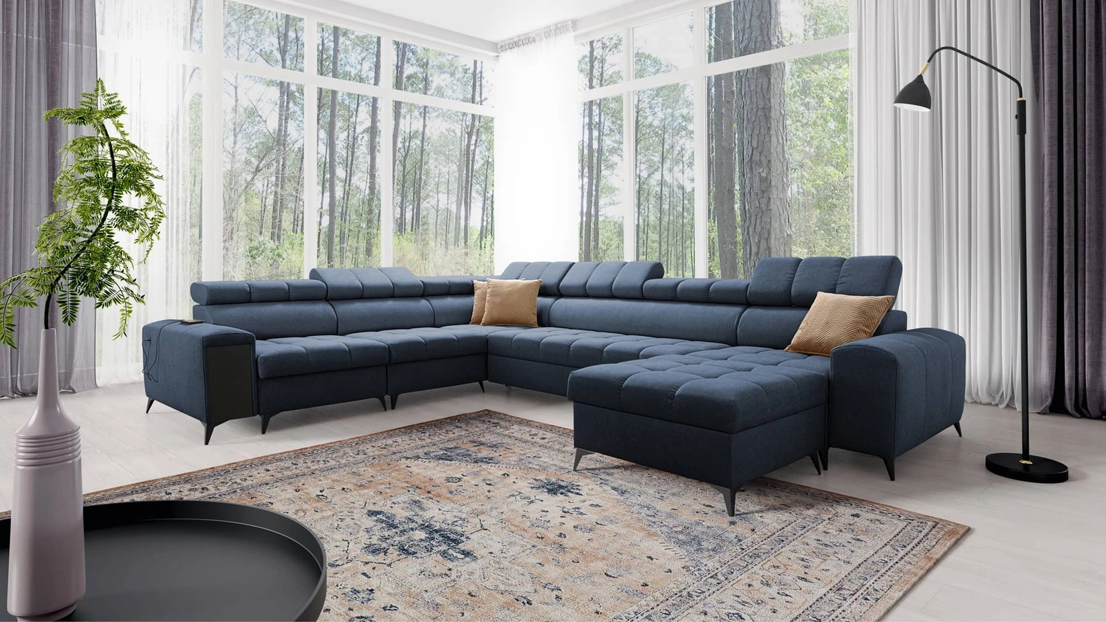 Bolmso Ecksofa VIII in Blau mit verstellbaren Kopfstützen ist ein reizvolles Möbelstück mit einer Garantie für höchsten Komfort und Funktionalität.