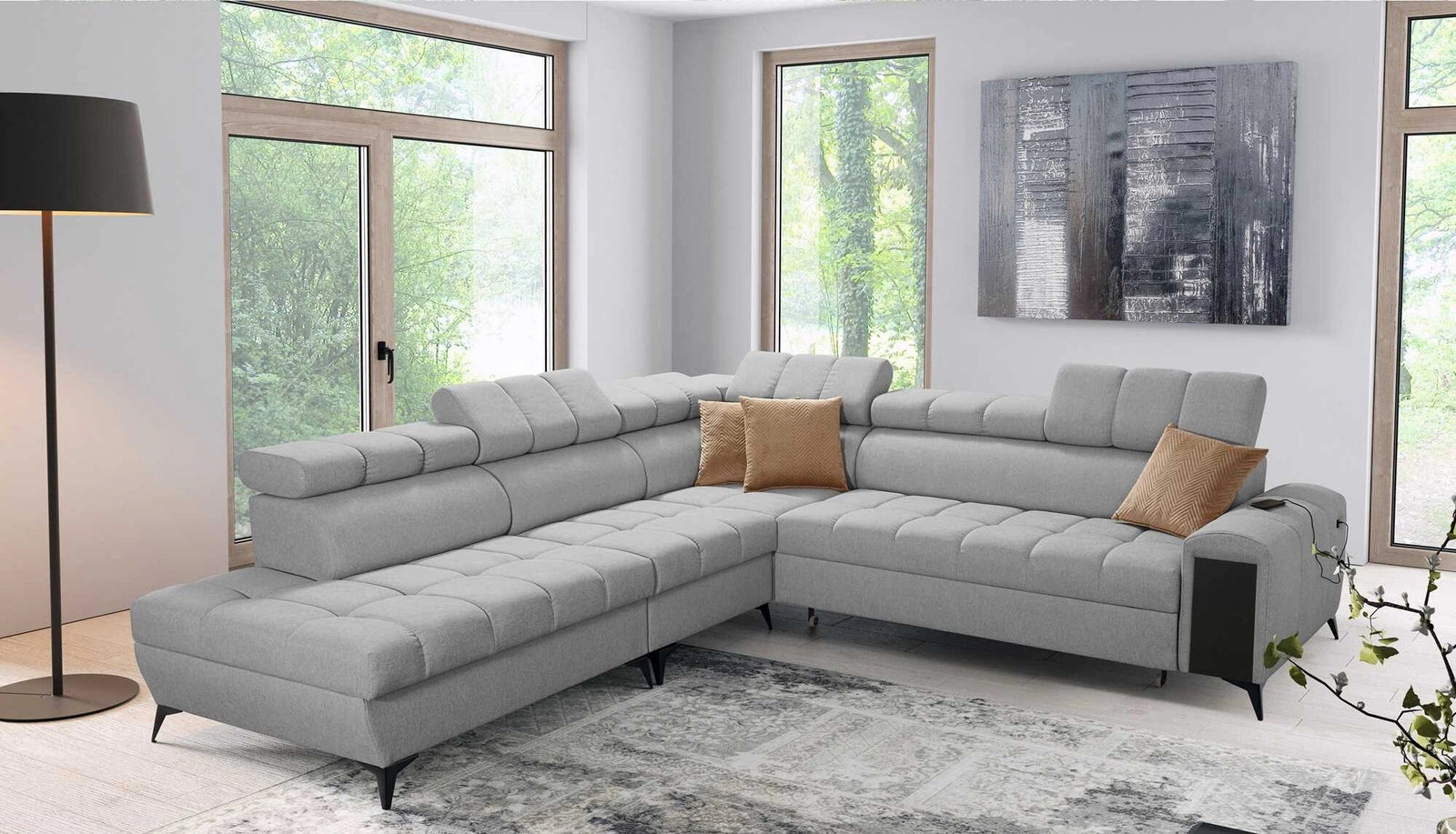 Weitere Merkmale dieses Möbelstücks, die von allen Nutzern geschätzt werden, sind Bettzeugbehälter, eine Schlaffunktion, eine USB-Ladebuchse in der Seite des Eckmöbels und eine Schublade mit Vollauszug in der Seite des Möbels.