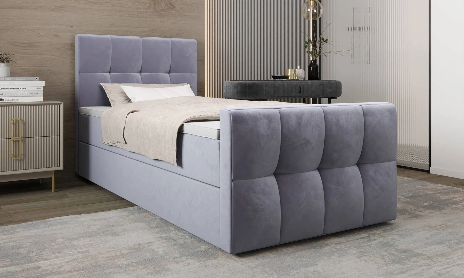 Boxspringbett Manhattan 90x200 in hellblau ist die perfekte Wahl für jedes Schlafzimmer oder Jugendzimmer.