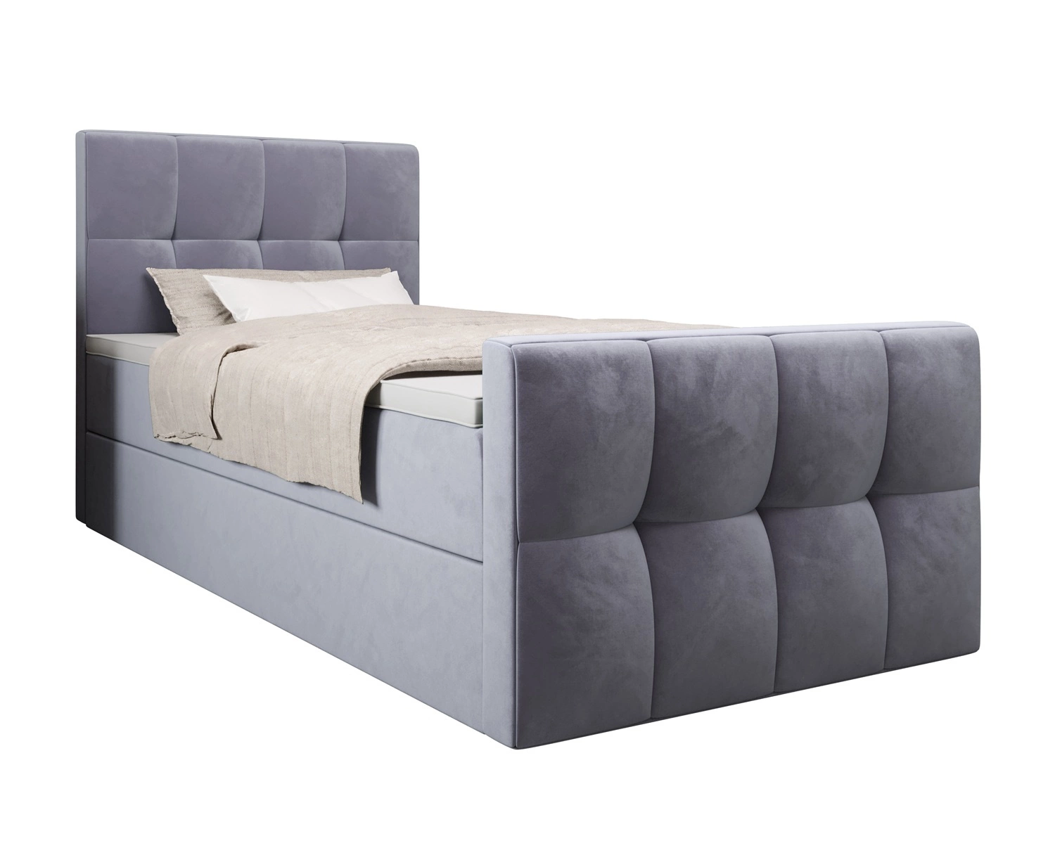 Boxspringbett Manhattan 90x200 hellblau Bett im modernen skandinavischen Stil mit gepolstertem Kopfteil und Fußteil Bett mit Staukasten